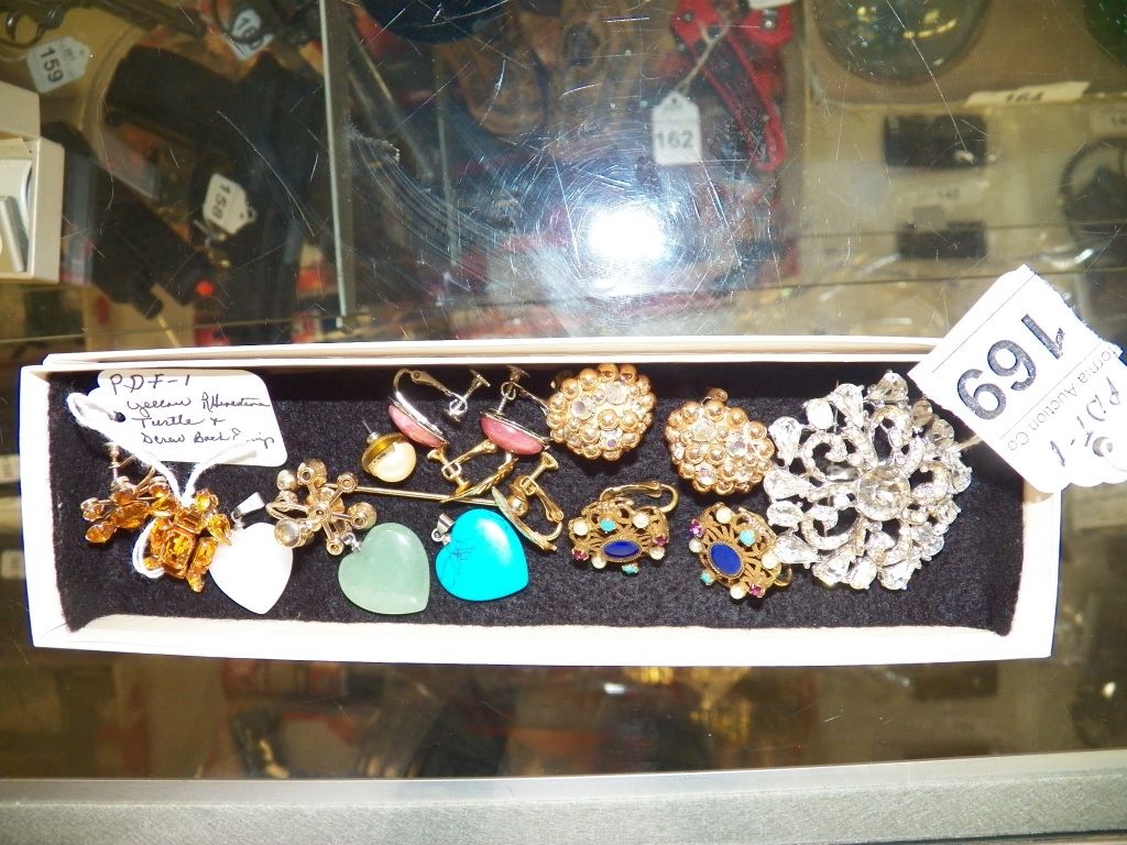 Misc. Lot of Jewerly Yellow Rhinestone Turtle Pin Yellow Rhinestone Earrings- Beautiful Rhinestone Pin - 3 Heart Pendants