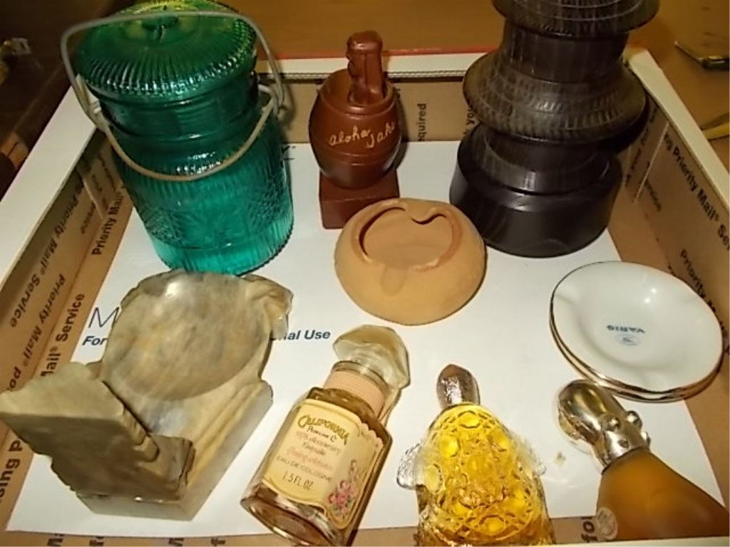 Misc. Lot of Perfume Bottles & Ashtrays