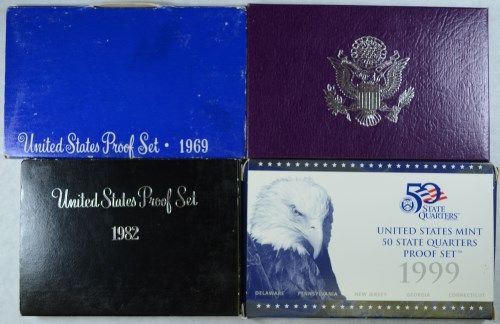 Misc Lot of United States Proof Sets, 1969, 1982, 1992 & 1999, In Original boxes