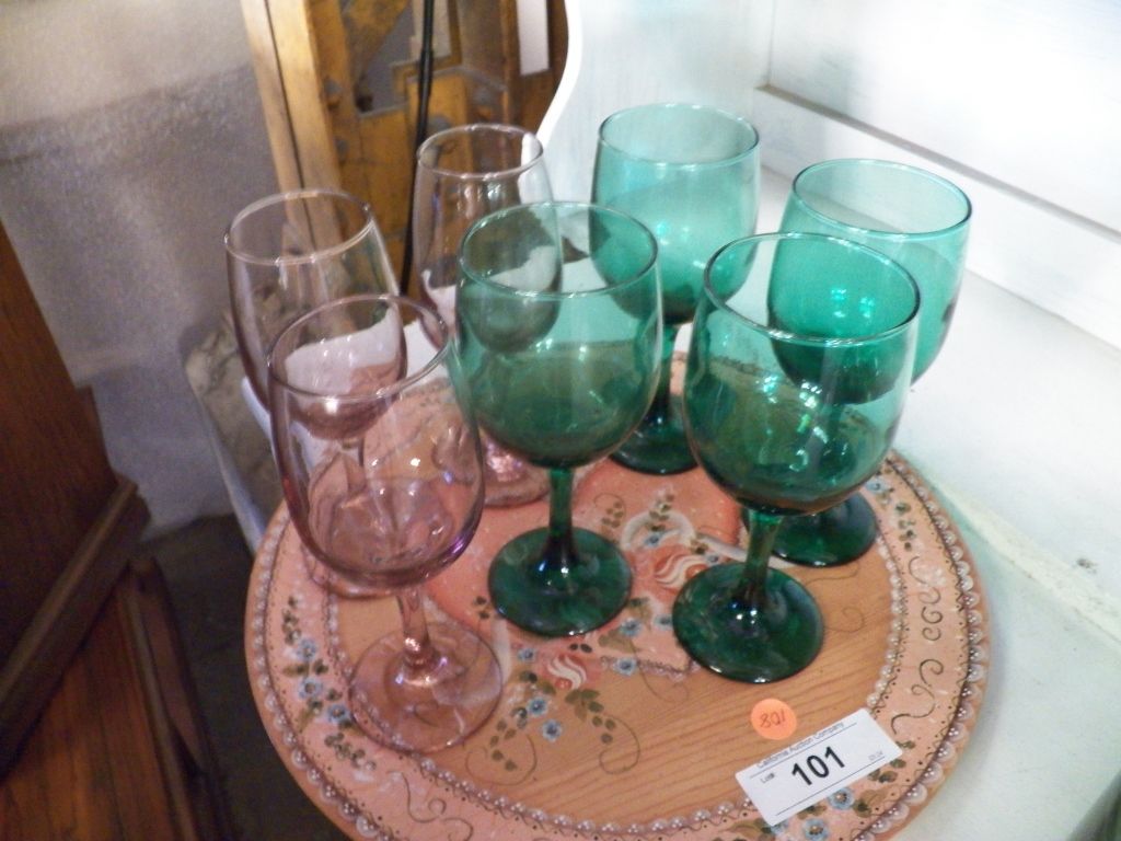 Misc. Lot of Wine Glasses On Wood Round Tray