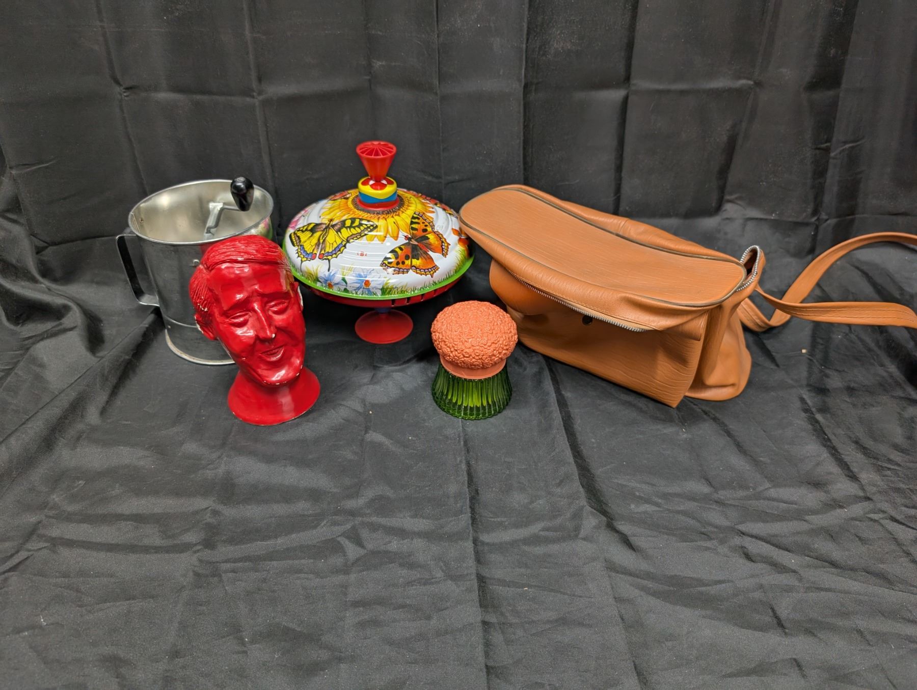 Misc. Lot of items (Spinning Toy, Red Face Statue, and etc.) w/ Bag