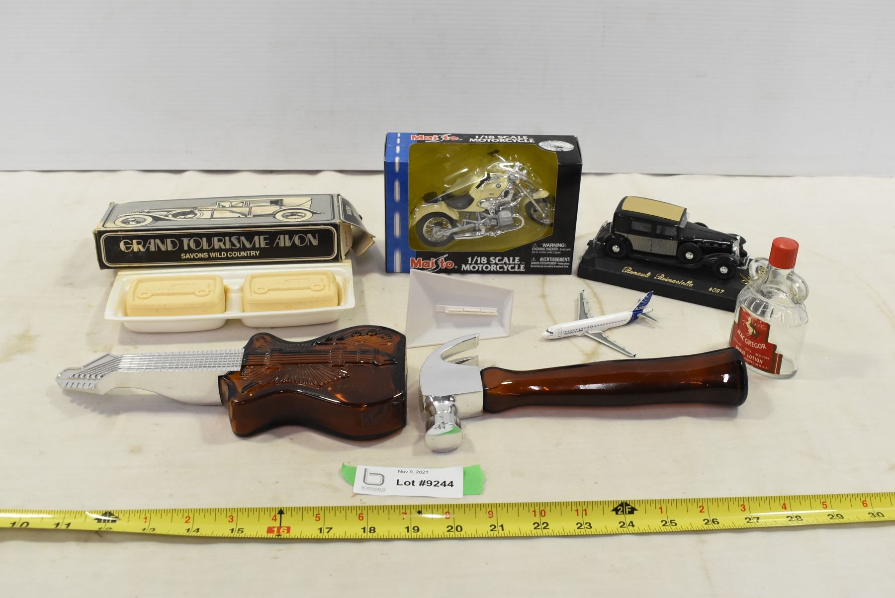 Misc. Lot w/ 1/18th Scale Motorbike, Avon Items.