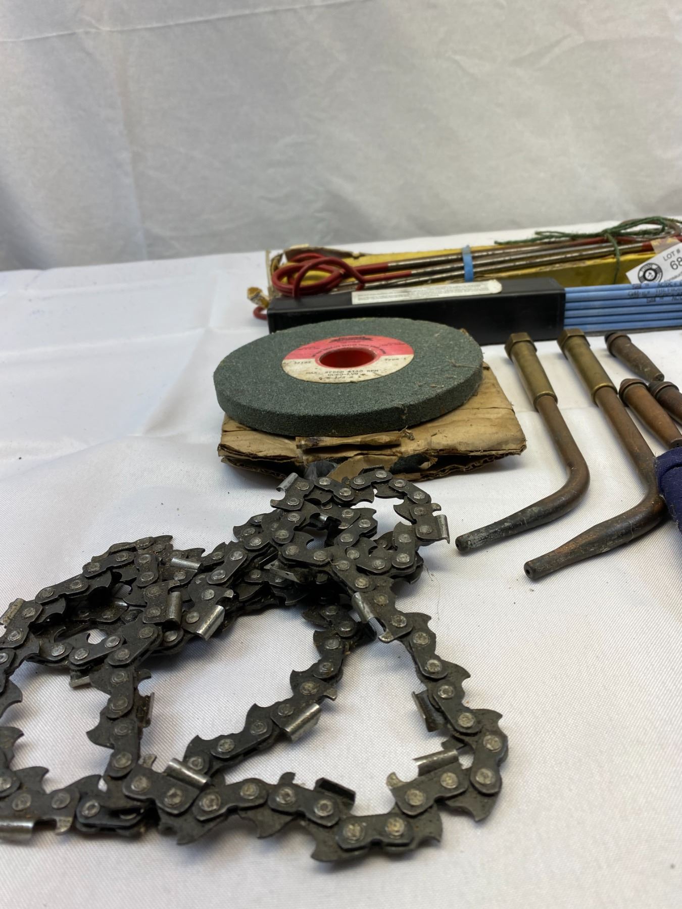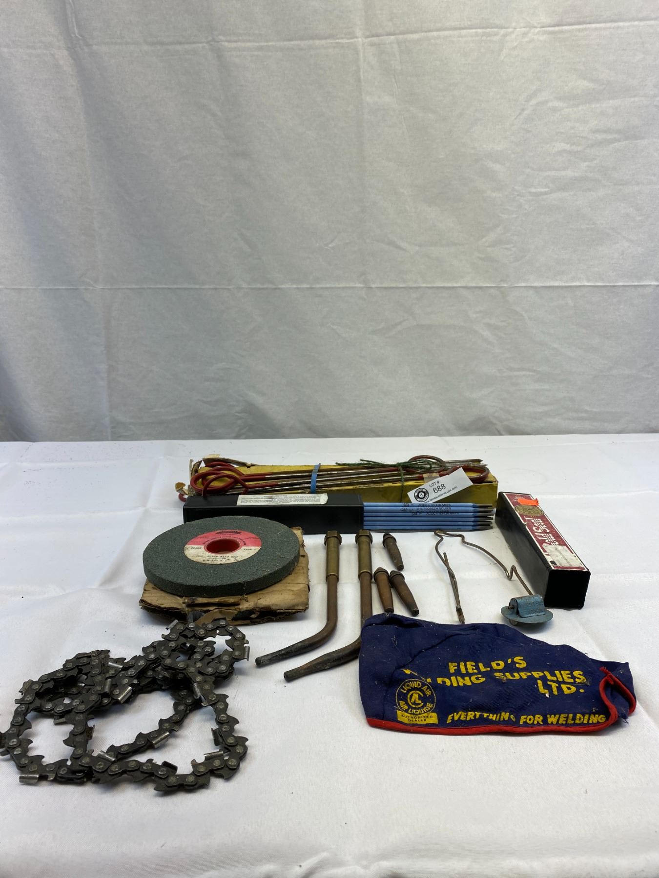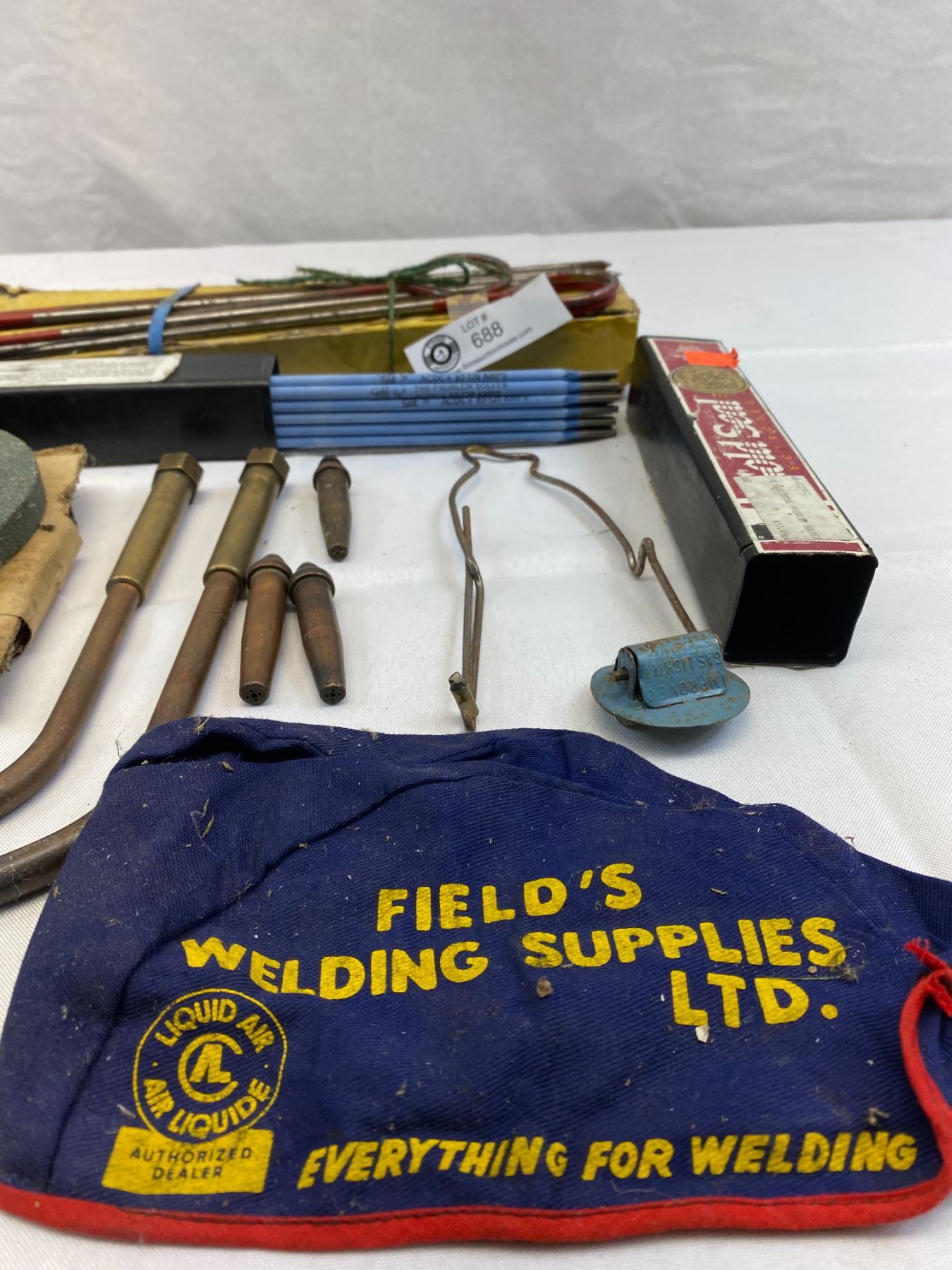 Misc. Shelf Lot Of Welding Rods, Hat, Stones, Etc.