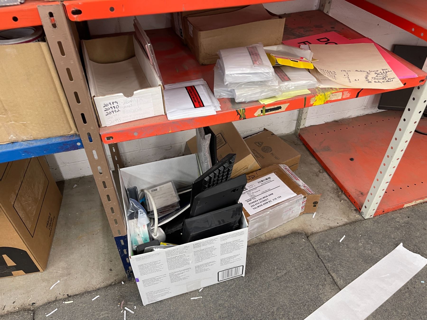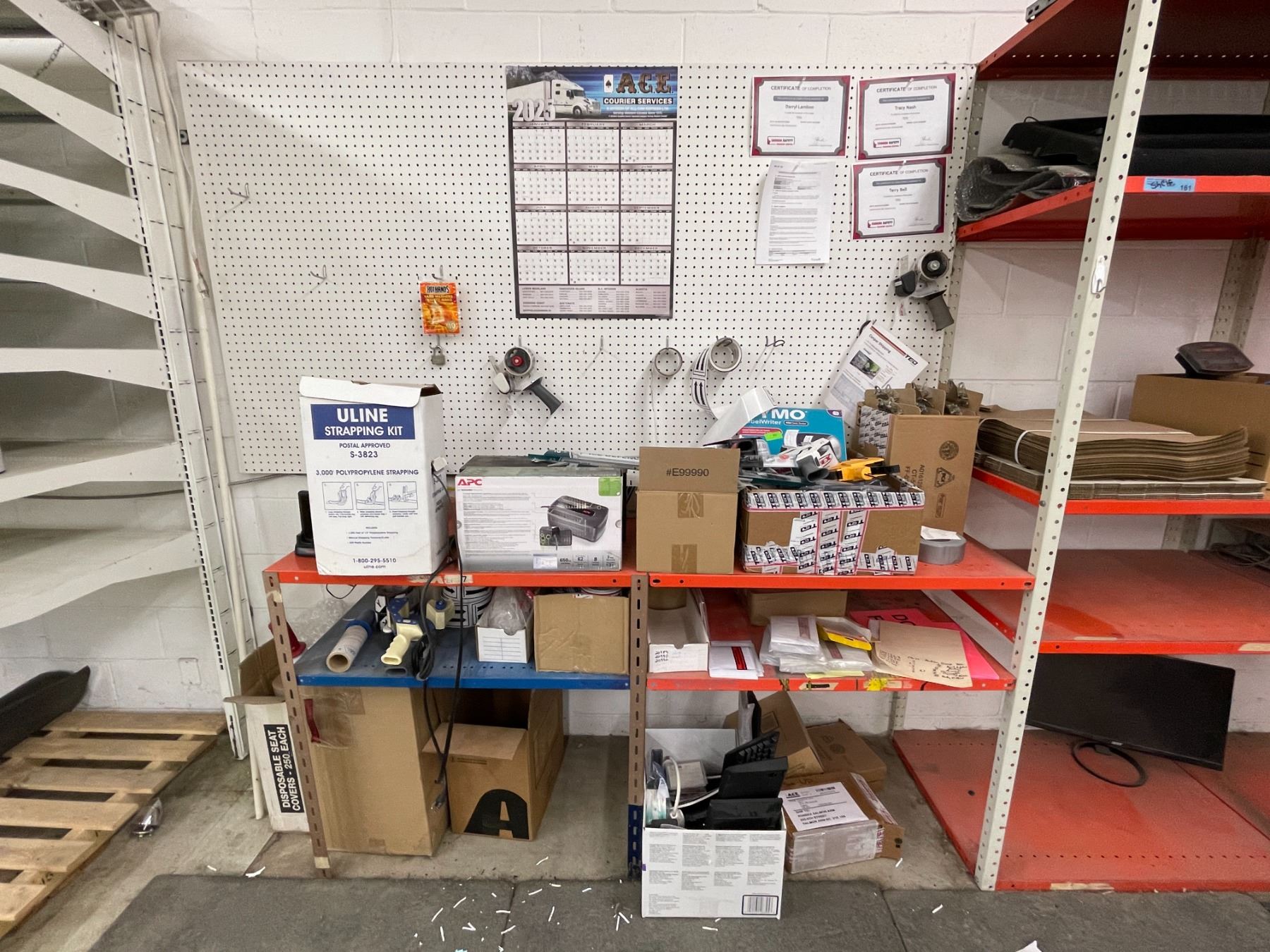 Misc. Shipping material and contents of shelves (Does NOT include shelves in pic)