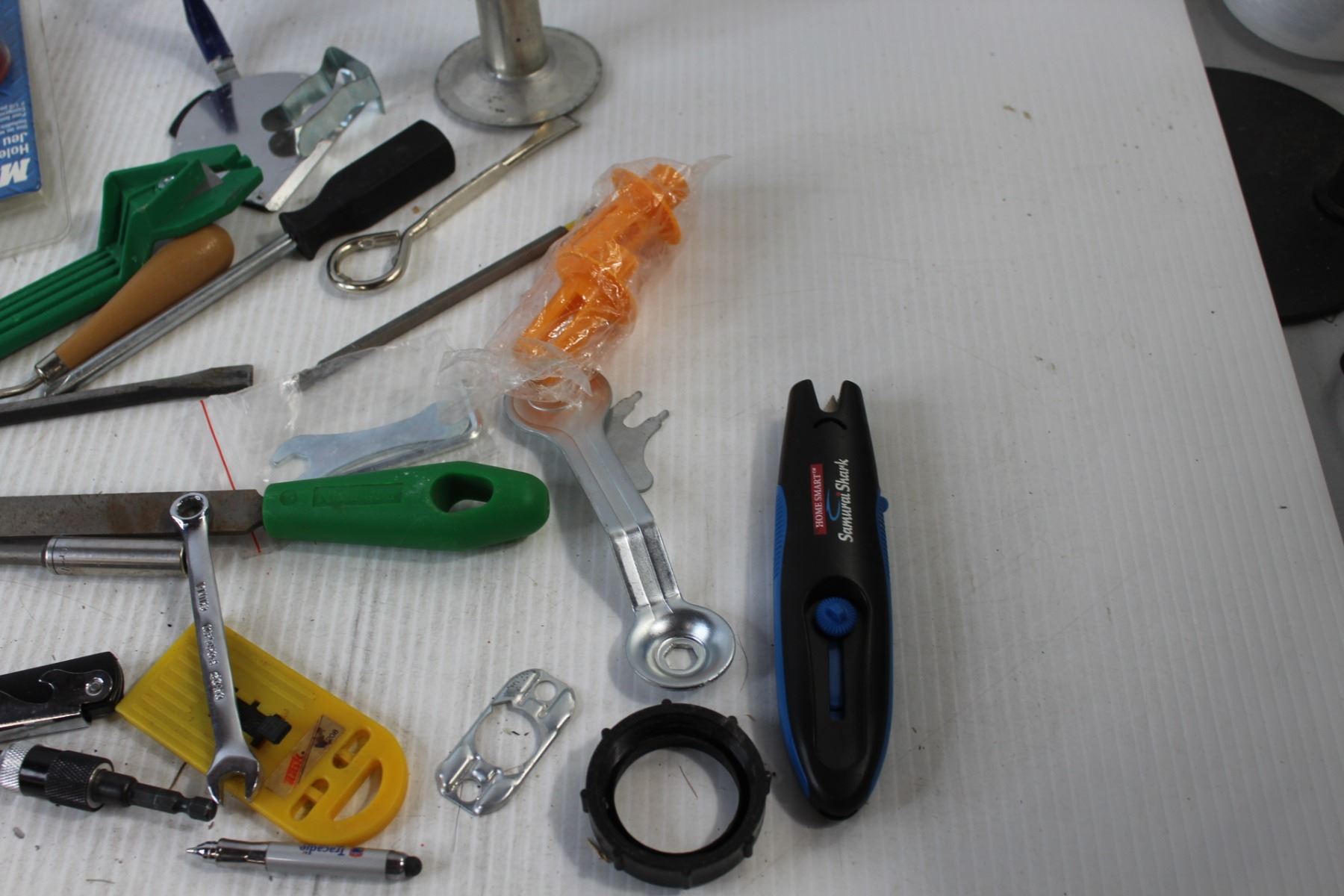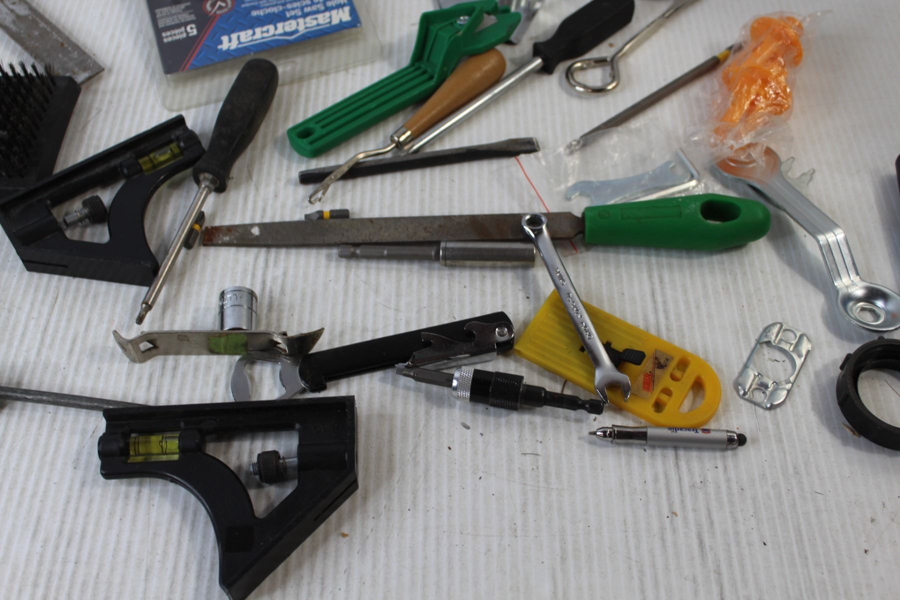 Misc. Shop Tools - File, T Square, Wire Brushes, Wrenches, Sockets, Paint/Can Openers, Partial Hole
