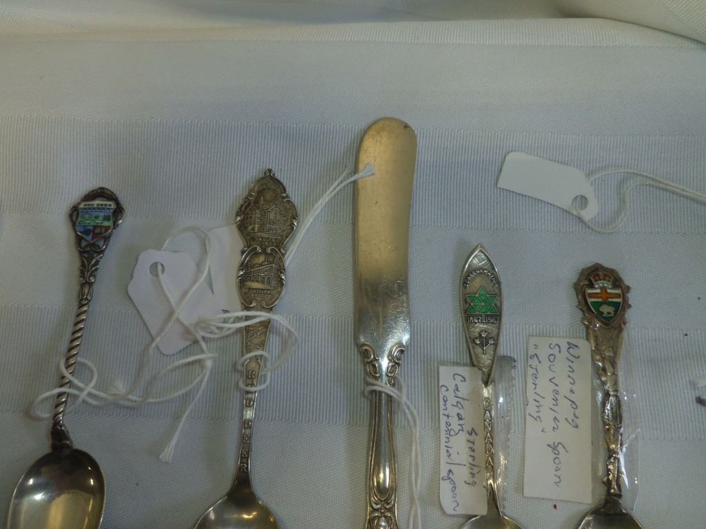 Red Deer, Calgary Centennial, Winnipeg and Victoria Sovenir Spoons Birks Butter Knife