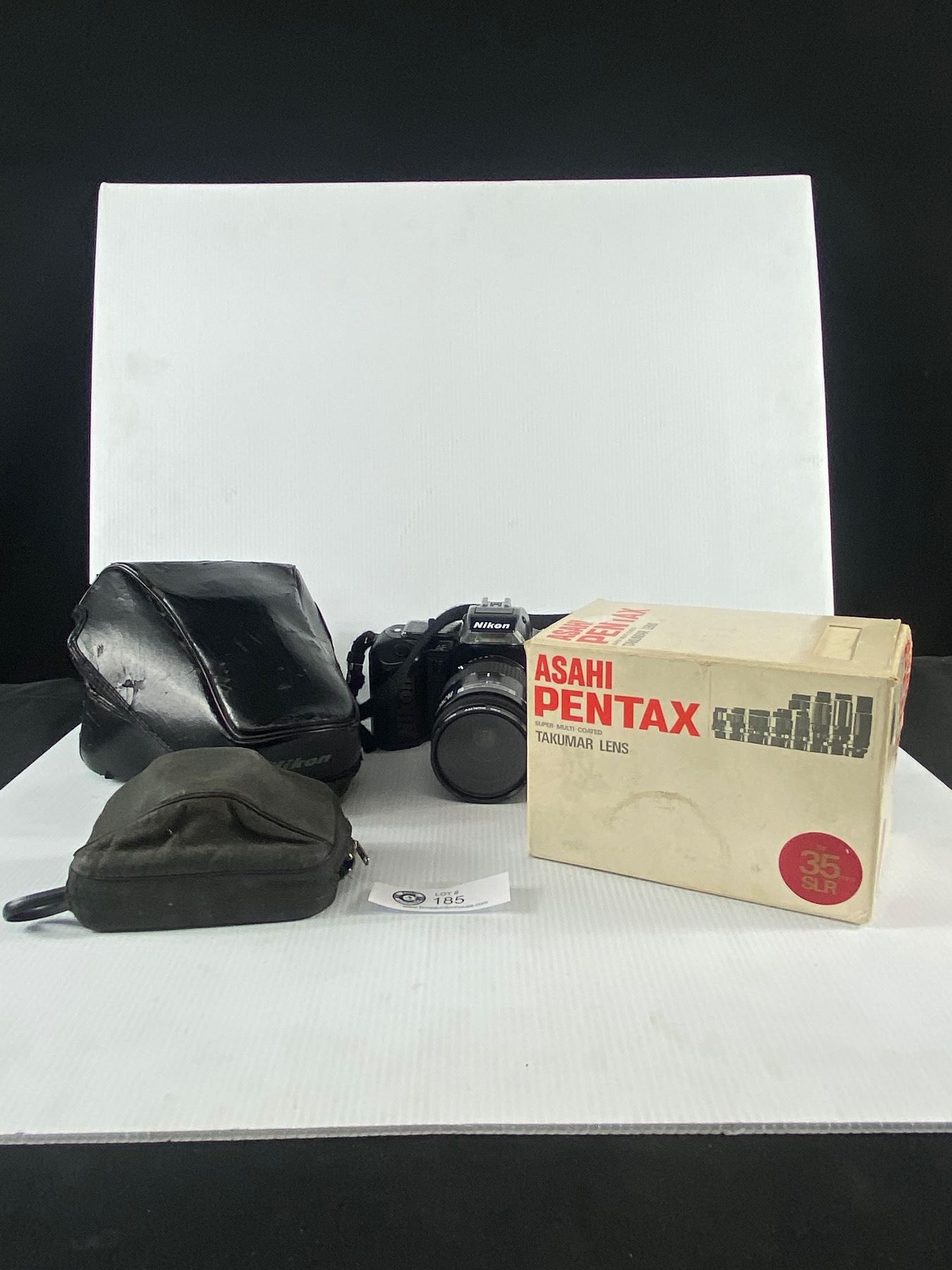Misc Vintae Camera Nikon F401 Film Camera withCase. Asahi Pentak Takumar Lens & Olympus Trip 35 Film Camera