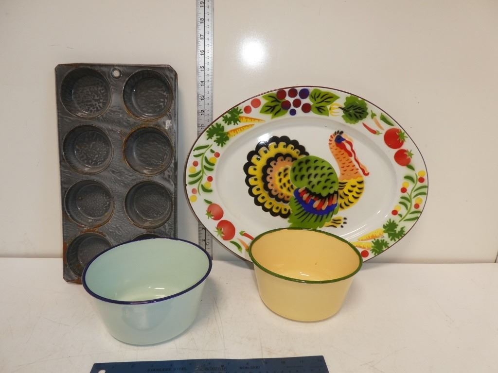 2 Bowls, Turkey Serving Platter and Cupcake Holder