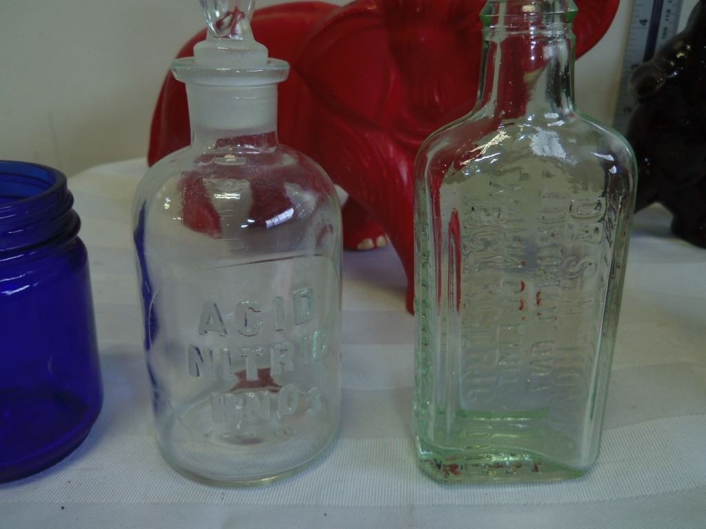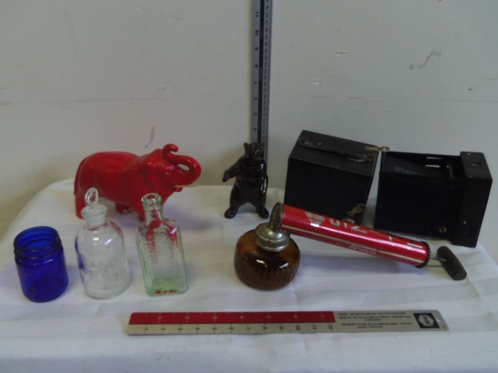 Made in The Netherlands, Blue Glass Jar, Antique Small Bottles, Ceramic Bear and Camera