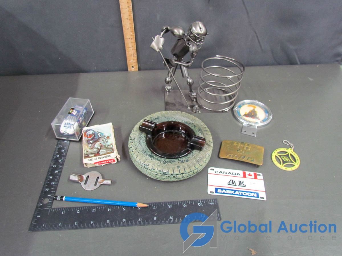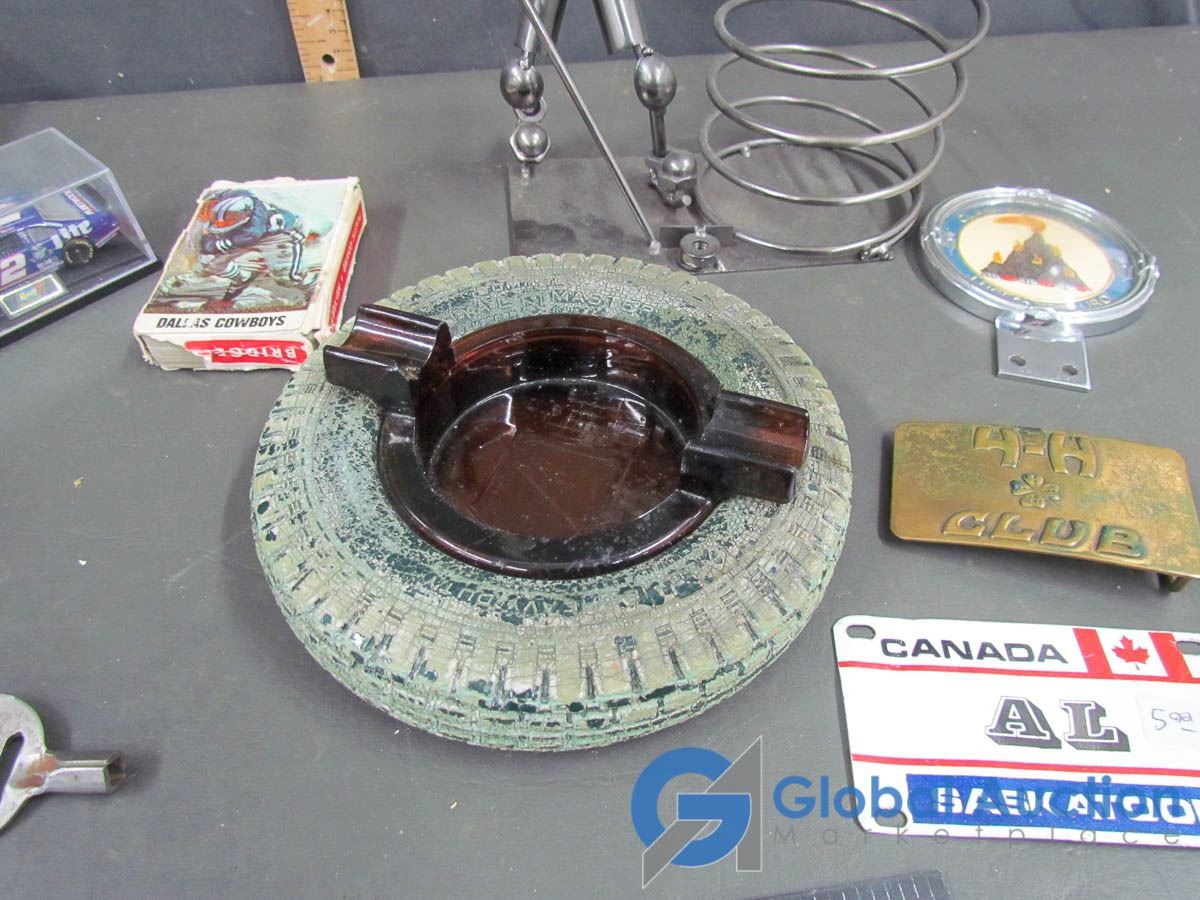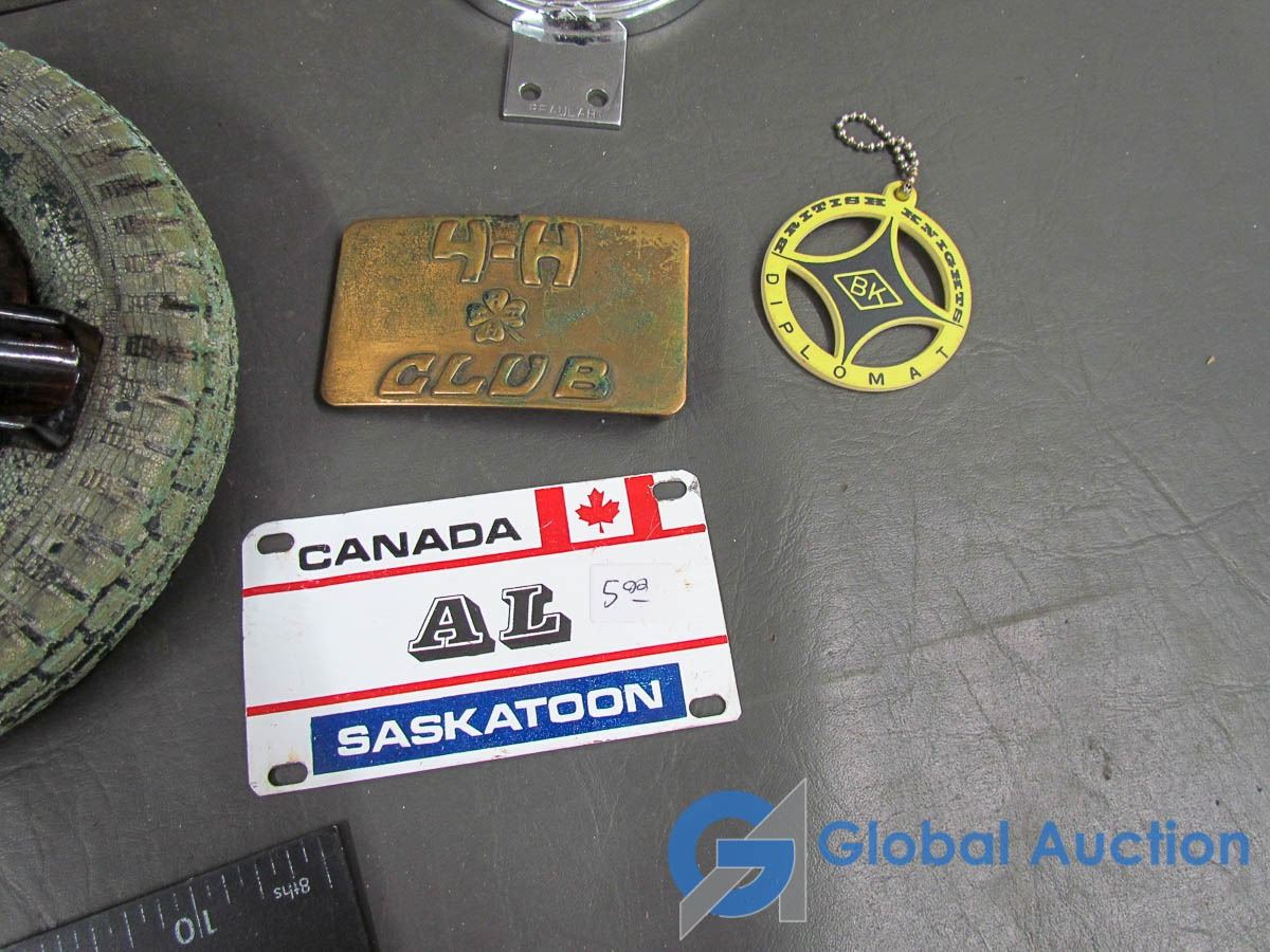 4-H Club Belt Buckle, Tire Ashtray, Hockey Decor etc