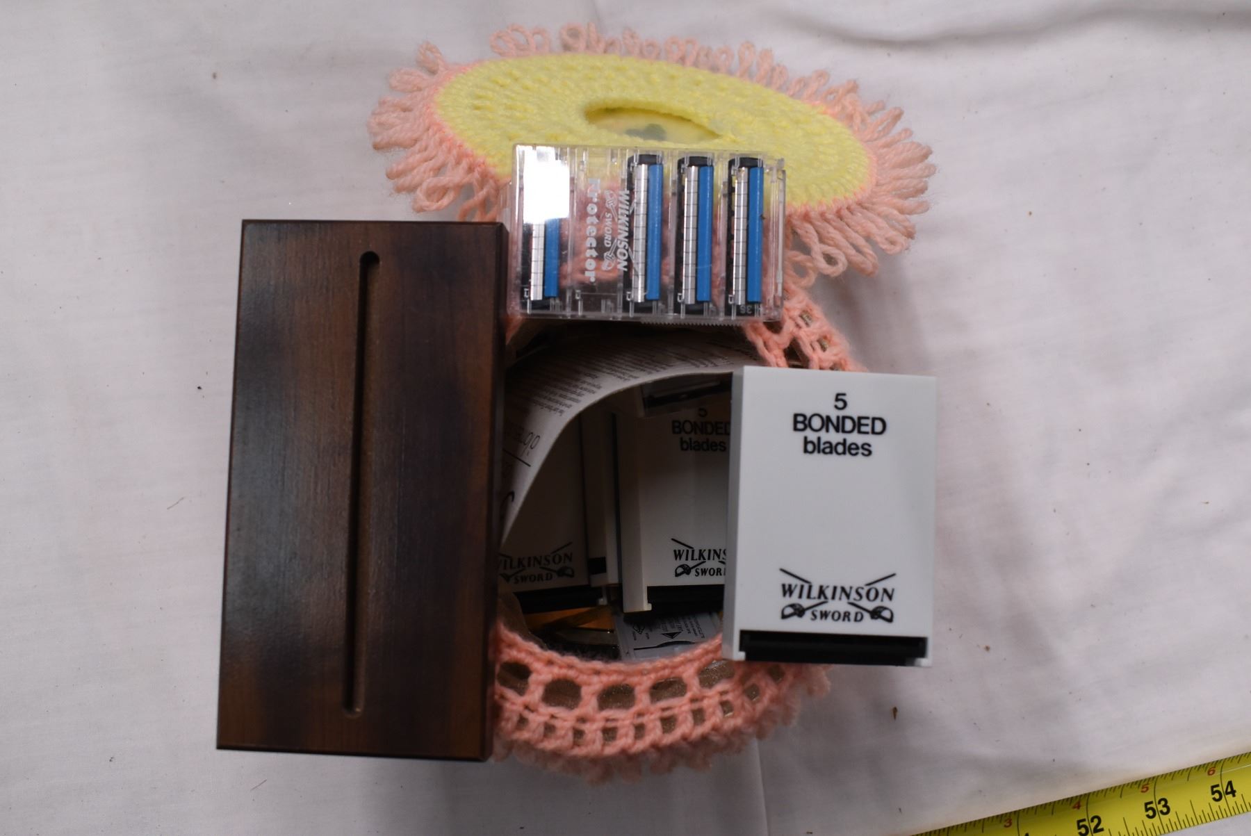 Misc. box with razers, 8-track.