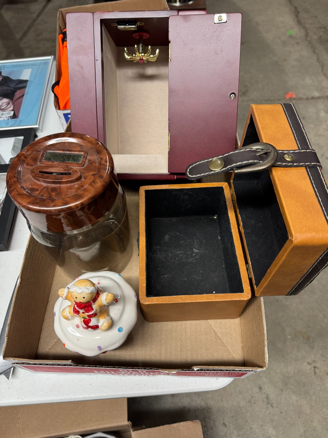 Misc containers, boxes, piggy bank