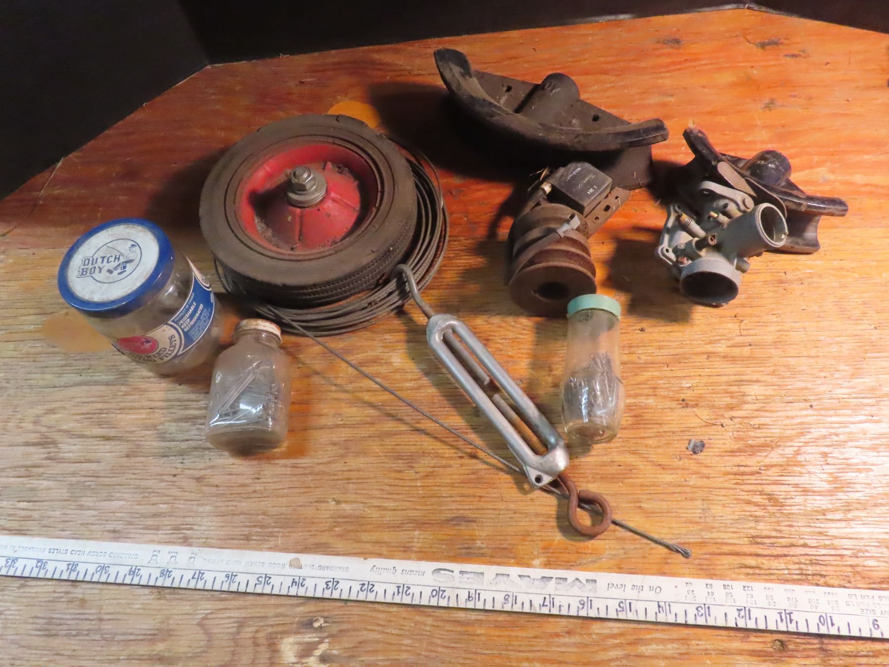 Misc hardware, nails, pipe bending pieces, roll ofcable wires