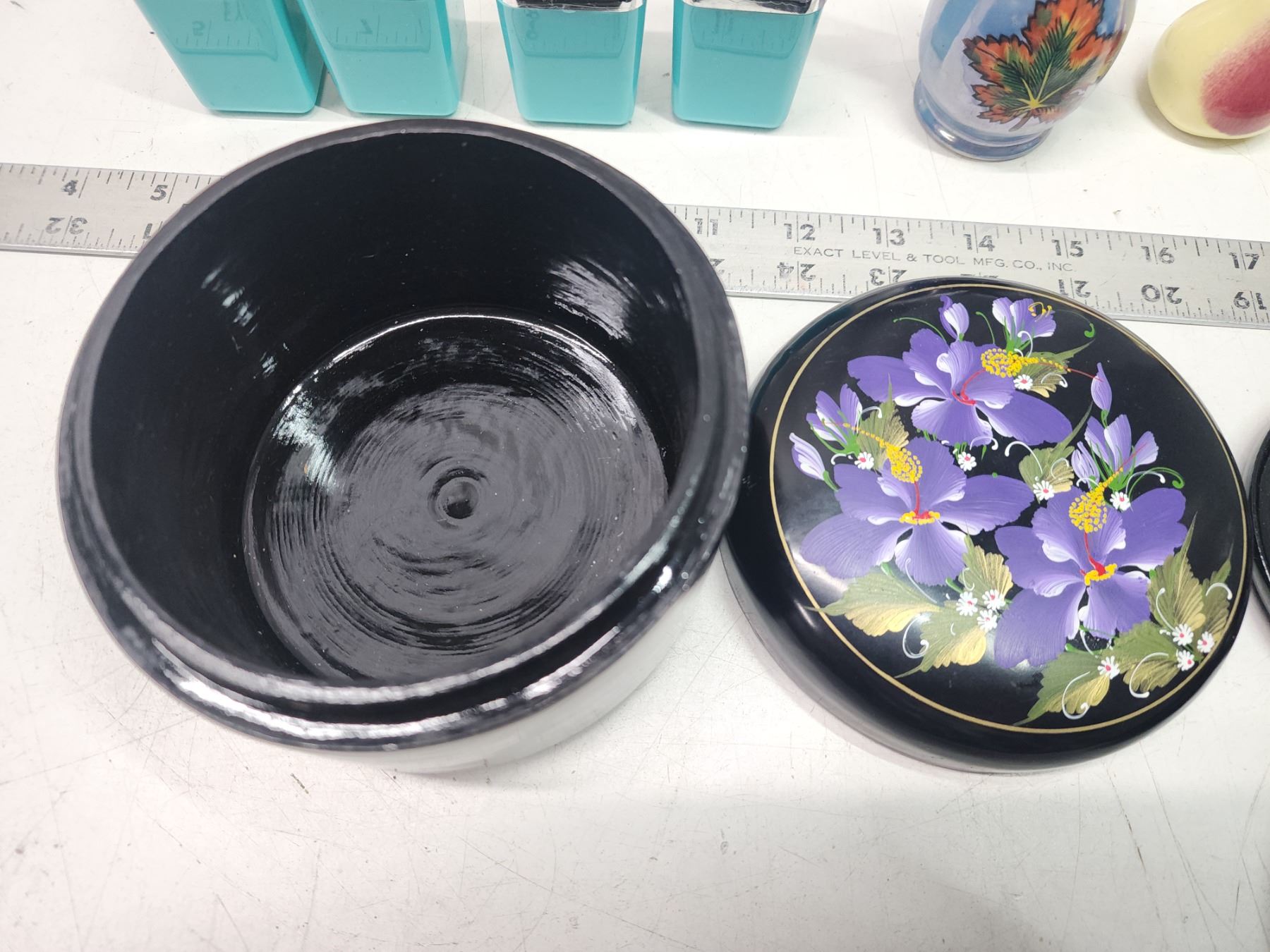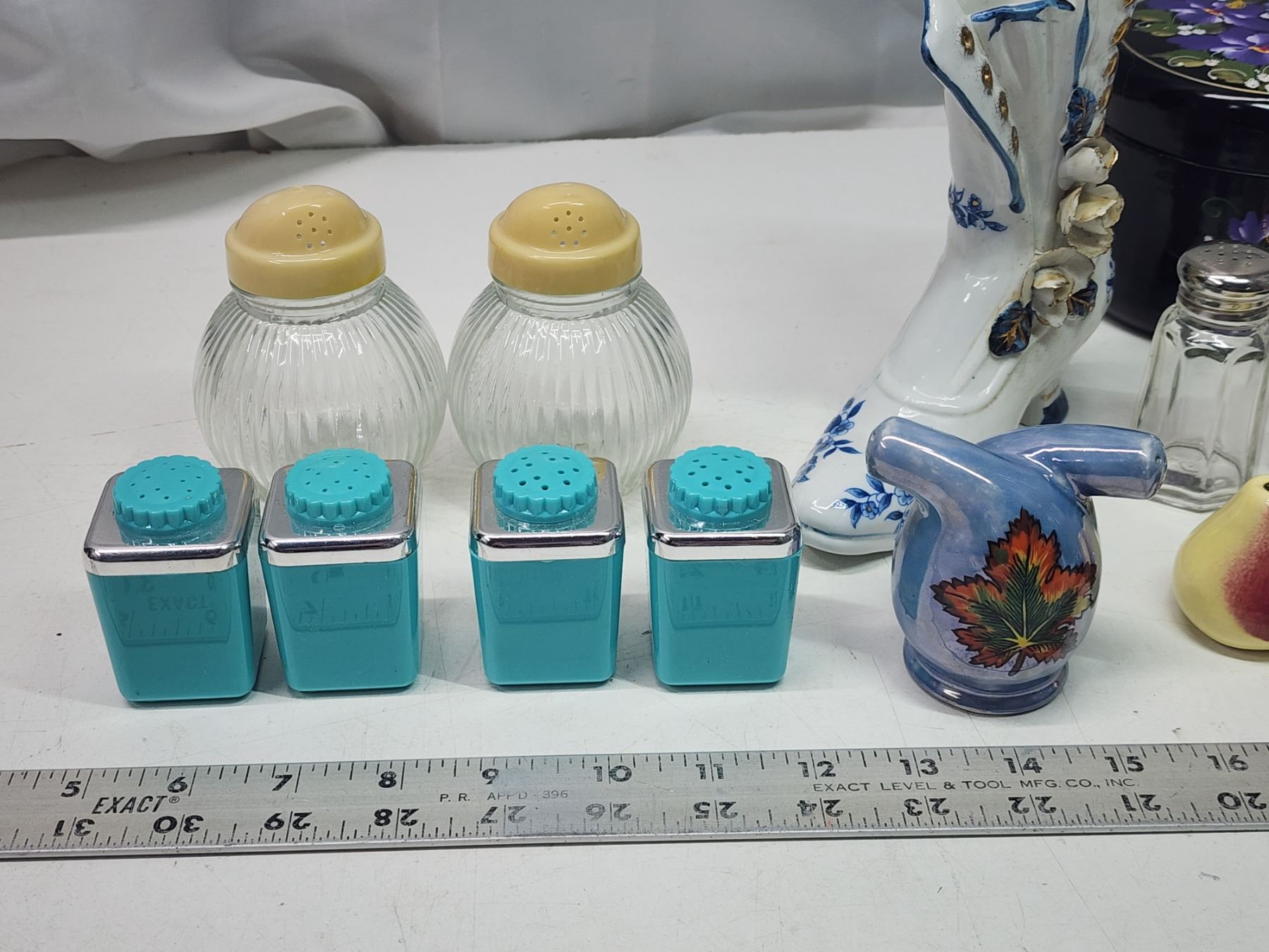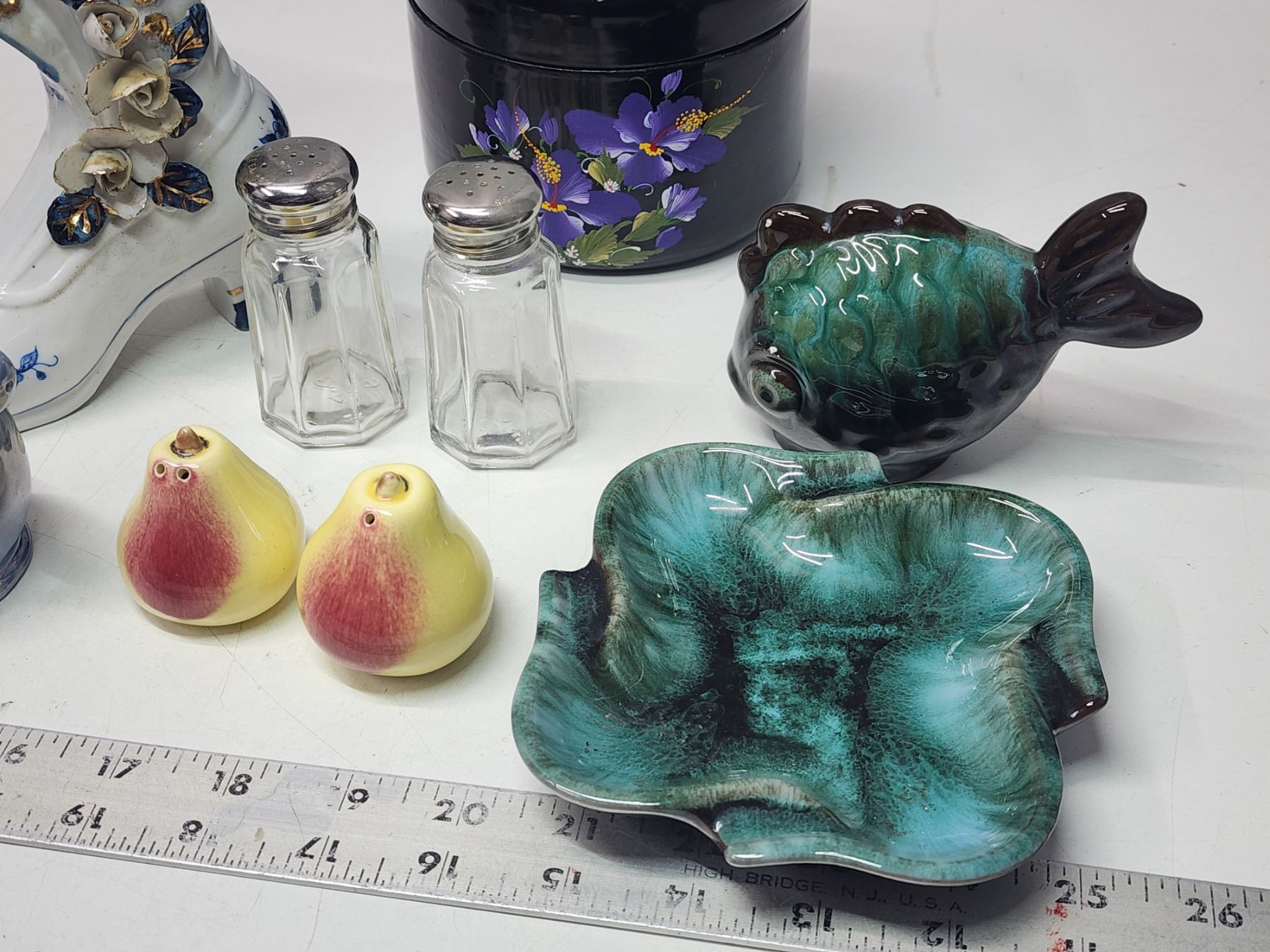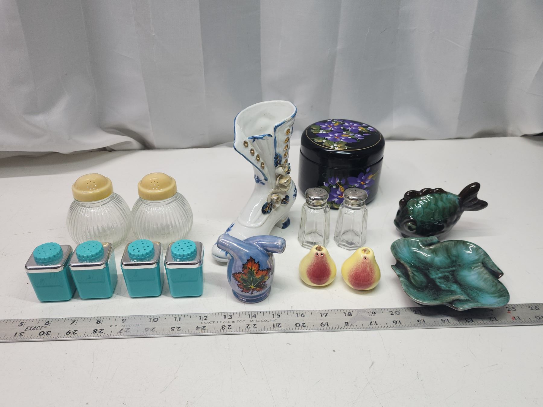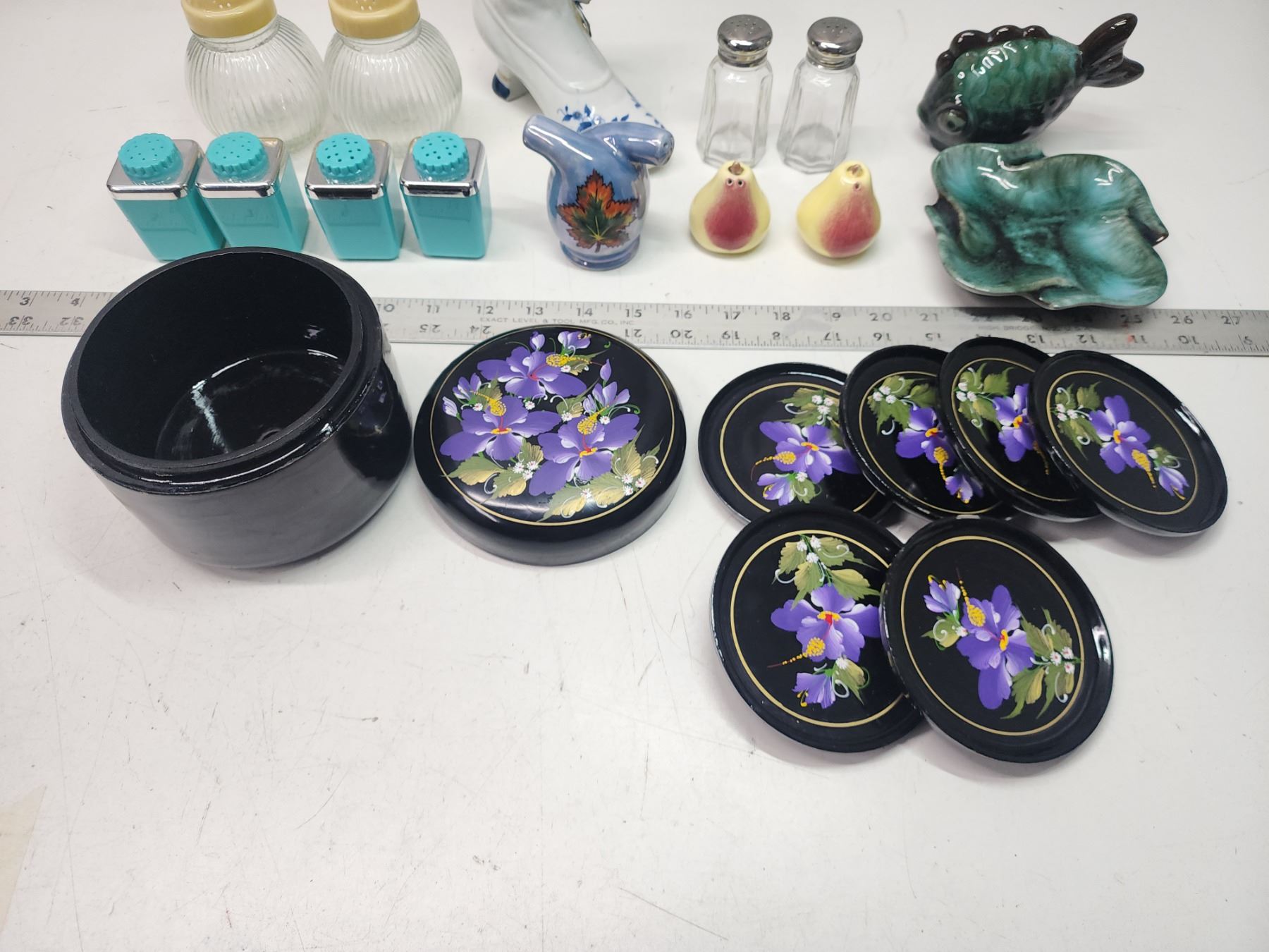 Misc. items - Salt n pepper shakers, ornaments, coasters - w/ case, etc.