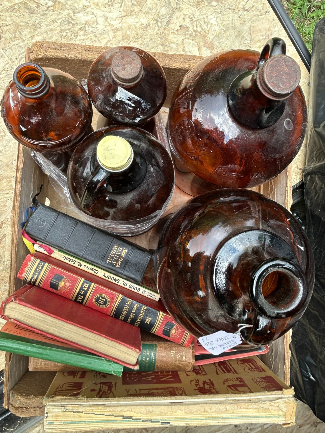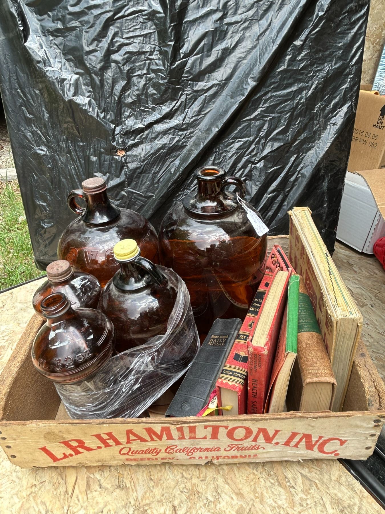 Misc. items in Apple Box Vintage Jugs/Bottles/Books