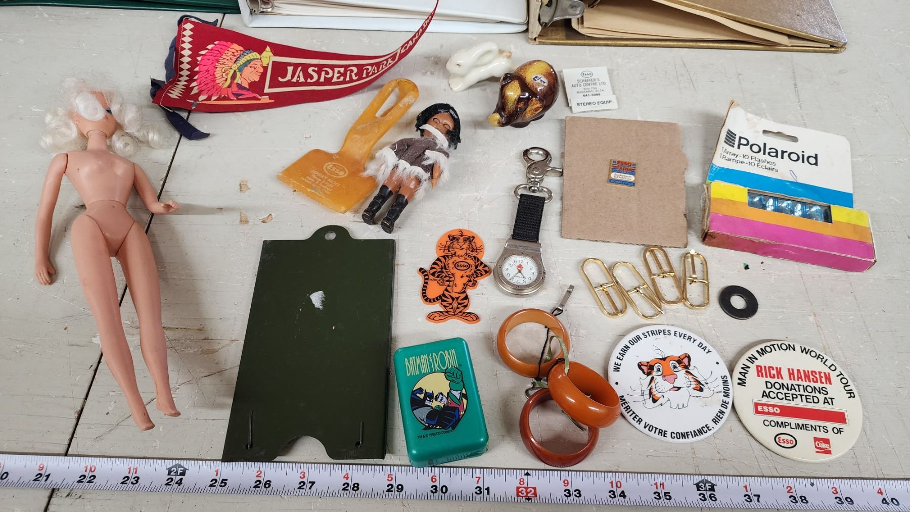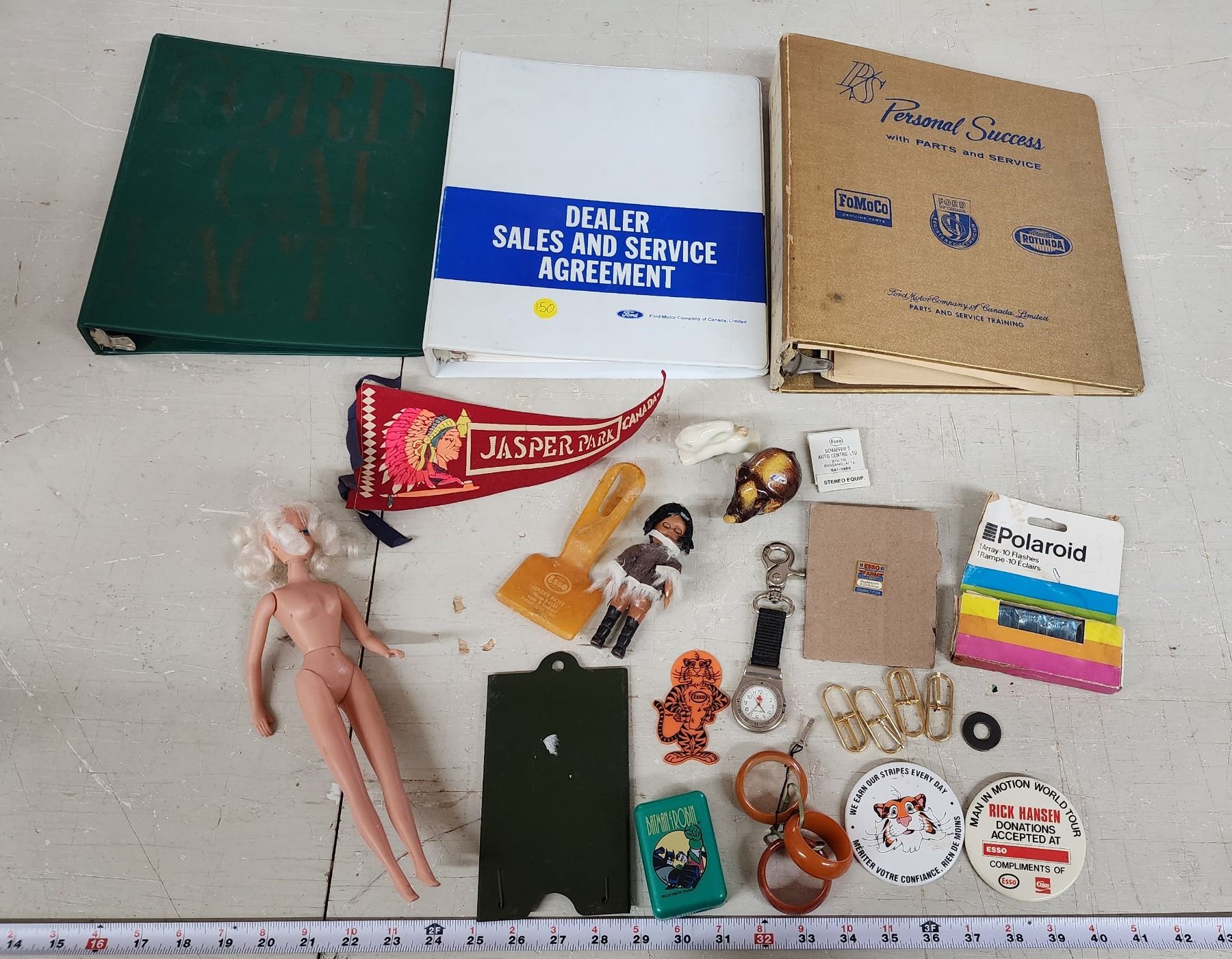 Misc items - ornaments, knick knacks, binders, barbie, watch, etc.