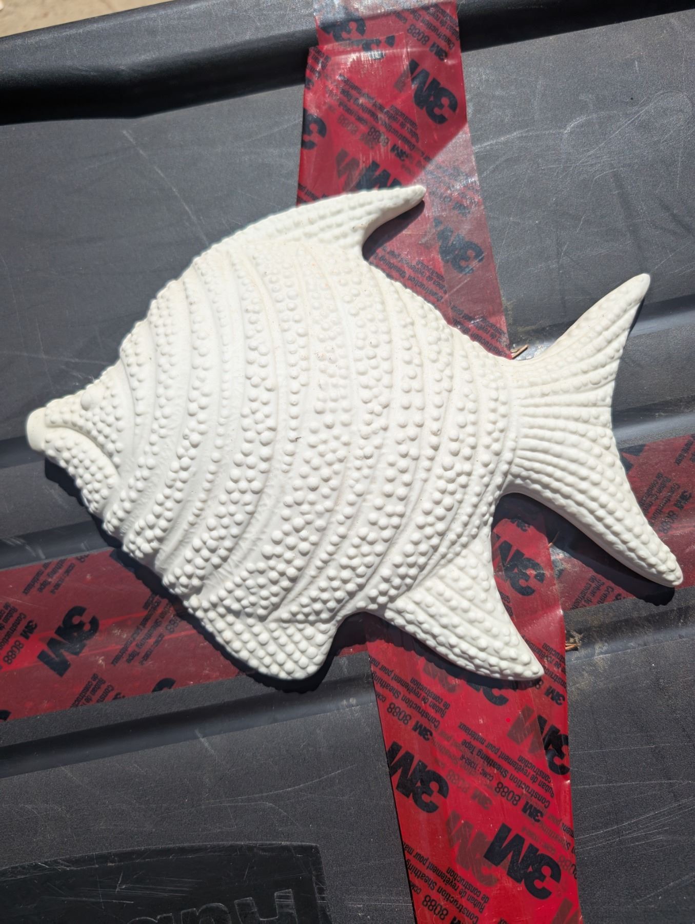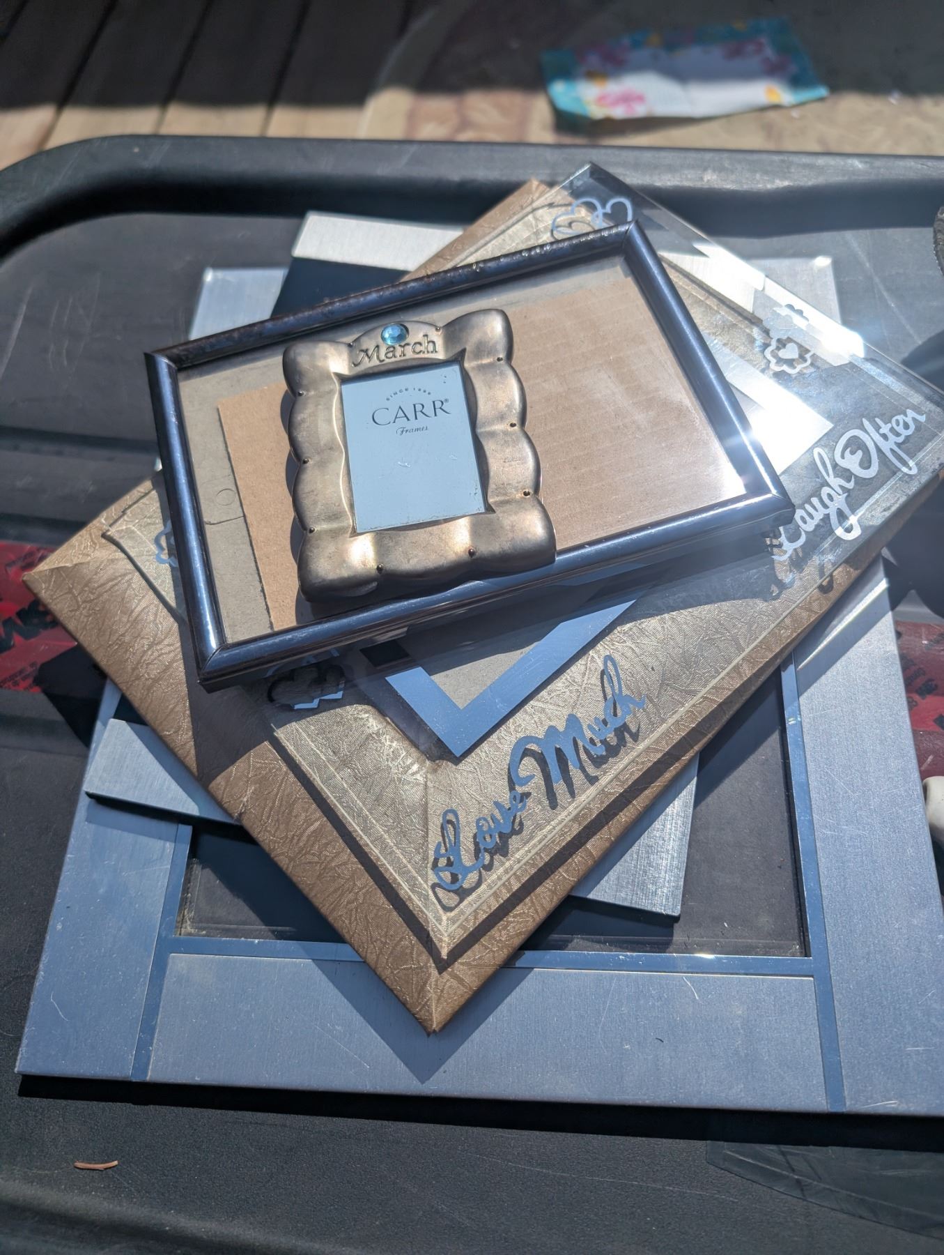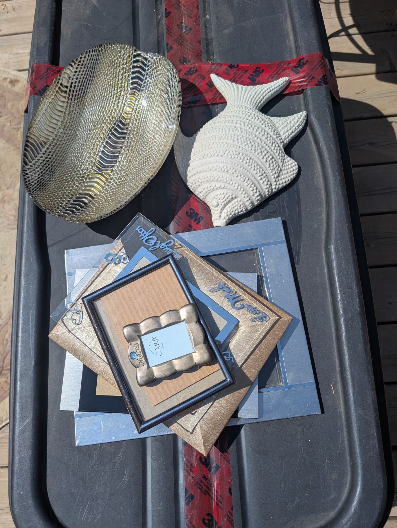 Misc. picture frames , ceramic fish wall hanging and snake bowl serving dish.