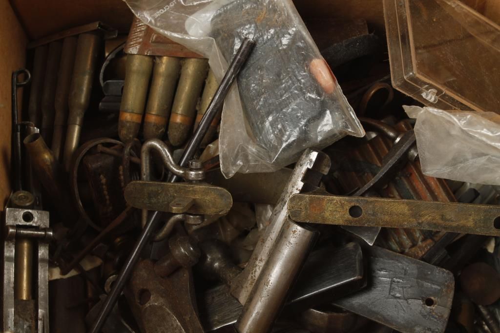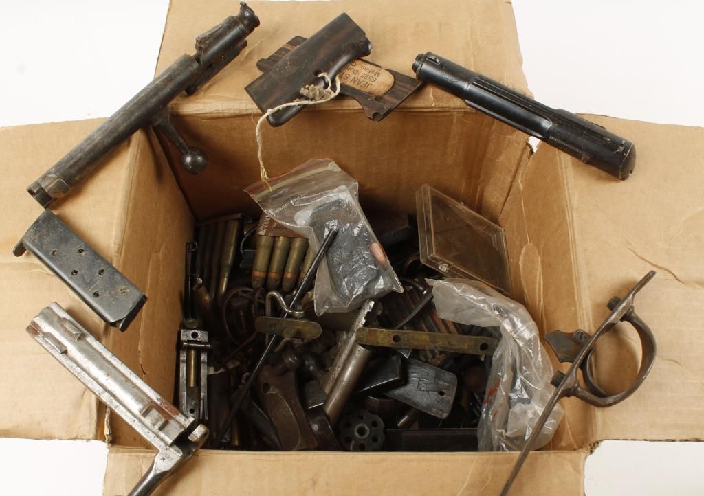 Approx 15 pounds. Including magazines, grips, bolts, cylinders, ammo, triggers, and more.
