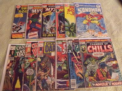 12 issues total, including Journey Into Mystery (second series) #'s 1-2, 6; Sword of Sorcery #1, 5; The Sandman #1, Chamber of Darkness #2, 6, 8; Crypt of Shadows #5, Godzilla #24, and Chamber of Chills #2. Avg condition ranges from FN to VF