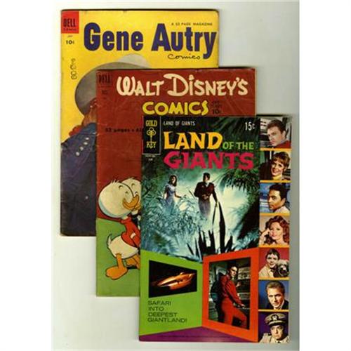 <B>Miscellaneous Golden Age Comics Group (Various Publishers, 1940s-'50s) Condition: Average GD.</B></I> Includes <B>Firehair </B></I>#4 and 6; <B>Aces High </B></I>#5 (covers detached); <B>First Love </B></I>#68 (Jack Kirby cover); <B>Land of the Giants </B></I>#4; <B>Walt Disney Comics and Stories </B></I>#133 and 135 (both with Carl Barks art); <B>Gene Autry Comics </B></I>#89; <B>Roy Rogers Comics </B></I>#84; <B>Blackhawk </B></I>#67 (Hitler story); and <B>Popular Comics </B></I>#72 (The Owl and Terry and the Pirates stories begin). Approximate Overstreet value for group = $175.<BR><BR><b>Shipping:</b> Comics - Unslabbed (<a target="_blank" href="http://www.heritageauctions.com/common/shipping.php">view shipping information</a>)