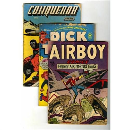 <B>Miscellaneous Golden Age Comics Group (Various Publishers, 1940s-'50s) Condition: Average GD-.</B></I> Includes <B>Cow Puncher </B></I>#5; <B>Indian Fighter </B></I>#8; <B>Ringo Kid Western </B></I>#10 (Al Williamson art); <B>Red Ryder Ranch Comics </B></I>#150; <B>Walt Disney's Comics and Stories </B></I>#90, 100 (Carl Barks art), and 132 (Barks art); <B>Airboy Comics </B></I>V3#1; <B>Dick Tracy </B></I>#38; <B>Conqueror Comics </B></I>#nn; <B>Mutt and Jeff </B></I>#56; <B>Four Color </B></I>#791 (77th Bengal Lancers), 795 (Jiminy Cricket #2), 952 (Goofy), and 967 (Chilly Willy); <B>Mystery In Space </B></I>#46 (FR, front cover detached); <B>Boy Commandos </B></I>#17; <B>Popular Comics </B></I>#79; <B>Detective Comics </B></I>#197; <B>Patsy Walker </B></I>#47; and <B>Lash LaRue </B></I>#3. Overstreet GD 2.0 value for group = $393.<BR><BR><b>Shipping:</b> Comics - Unslabbed (<a target="_blank" href="http://www.heritageauctions.com/common/shipping.php">view shipping information</a>)