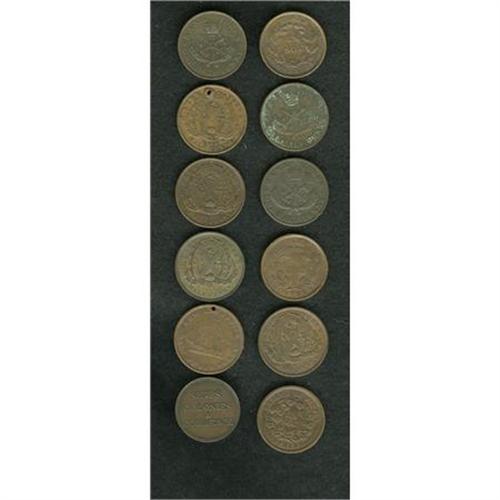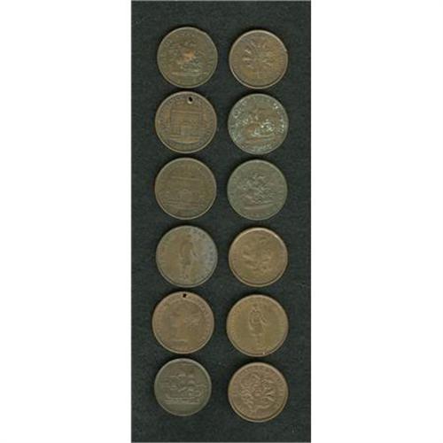 <B>12-Piece Miscellany of Canadian Breton Tokens.</B></I> Copper. Included in this lot are a couple of better Breton tokens: <B>(1838) Banque Du Peuple, B-715/LC-5A3, XF; (1829) Prince Edward Island Ships, Colonies & Commerce U.S. Flag token, B-997/PE-10-34 with double H, XF; </B></I>plus <B>10 other</B></I> <B>Breton tokens.</B></I><BR><BR><b>Shipping:</b> Coins & Currency (<a target="_blank" href="http://www.heritageauctions.com/common/shipping.php">view shipping information</a>)