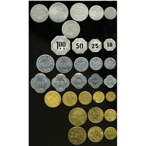 <B>Miscellaneous Group Lot of Tokens.</B></I> Consists of four different sets of tokens and one with two sets, plus a group of mixed tokens. Two of the sets are prison tokens, Dept of Corr. Ark and Cummins State Farm. Other states include Kansas, Georgia, and North Carolina. The market value is approximately $100-$150.<BR><BR><b>Shipping:</b> Coin/Currency (<a target="_blank" href="http://www.heritageauctions.com/common/shipping.php">view shipping information</a>)