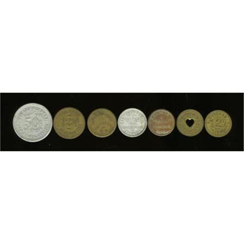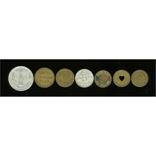 <B>Miscellaneous Group Lot of U.S. Merchants Tokens.</B></I> Brass/Aluminum, group lot of merchants good for's from the following states;<B> North Dakota, South Dakota, Wyoming, Colorado, Montana, and Washington. </B></I>This might be one of those lot you don't want to overlook,<BR><BR><b>Shipping:</b> Coins & Currency (<a target="_blank" href="http://www.heritageauctions.com/common/shipping.php">view shipping information</a>)