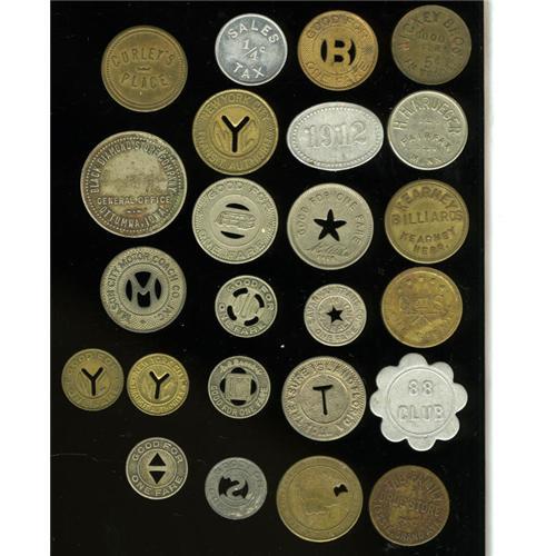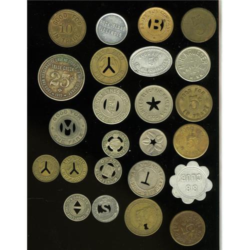 <B>Miscellaneous Group Token Lot.</B></I> Twenty-four transportation and merchant tokens. Market value is roughly $100.<BR><BR><b>Shipping:</b> Coin/Currency (<a target="_blank" href="http://www.heritageauctions.com/common/shipping.php">view shipping information</a>)