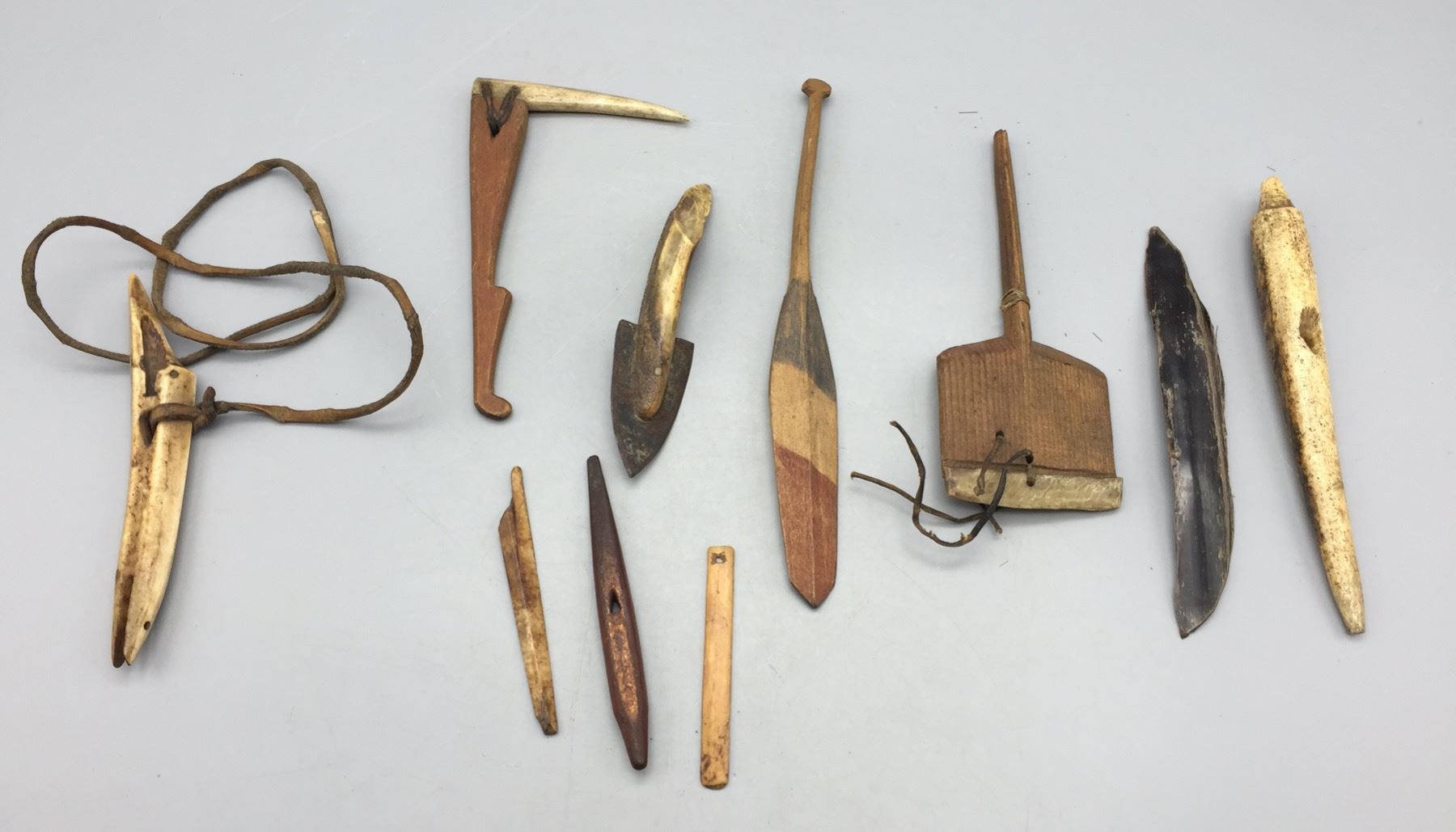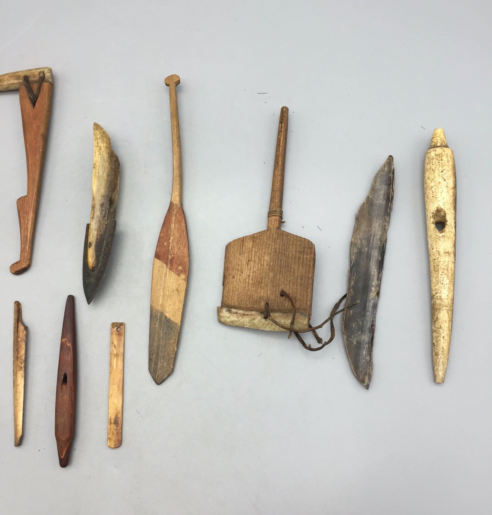 Description: Included for sale in this lot is a group of miscellaneous ivory, tools, and other items from Alaska. From the estate of an old Doctor who worked in the outback of Alaska and often traded with the Natives. Take a look! Maker: Unknown. Approx. Age: Mostly antiques. Size: From 2-1/2"w x 6-1/4"long to 3/8"w x 3" long. Condition: As found. Please look closely at the pictures - they are an important part of our description. Shipping: There will be a $8 handling / packaging fee for shipping this lot. The actual cost of postage will be added on top of that.