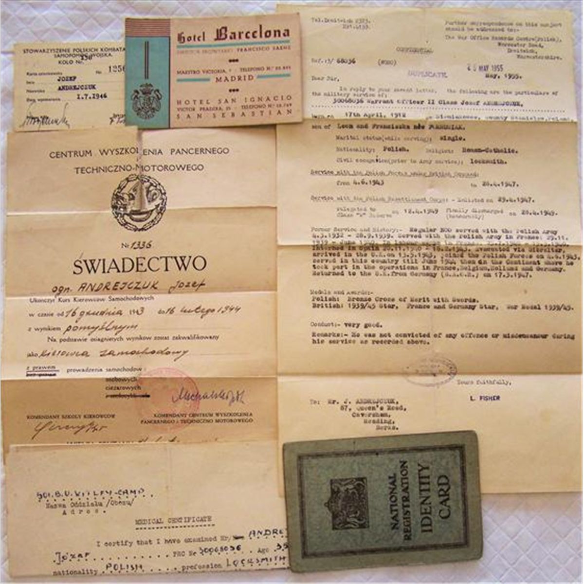 Miscellaneous Lot Military Papers - Centrum Wyszkolenia Pancernego 1943, Medical Certificate 1948, National Registration Identity Card 1949-50 Plus more