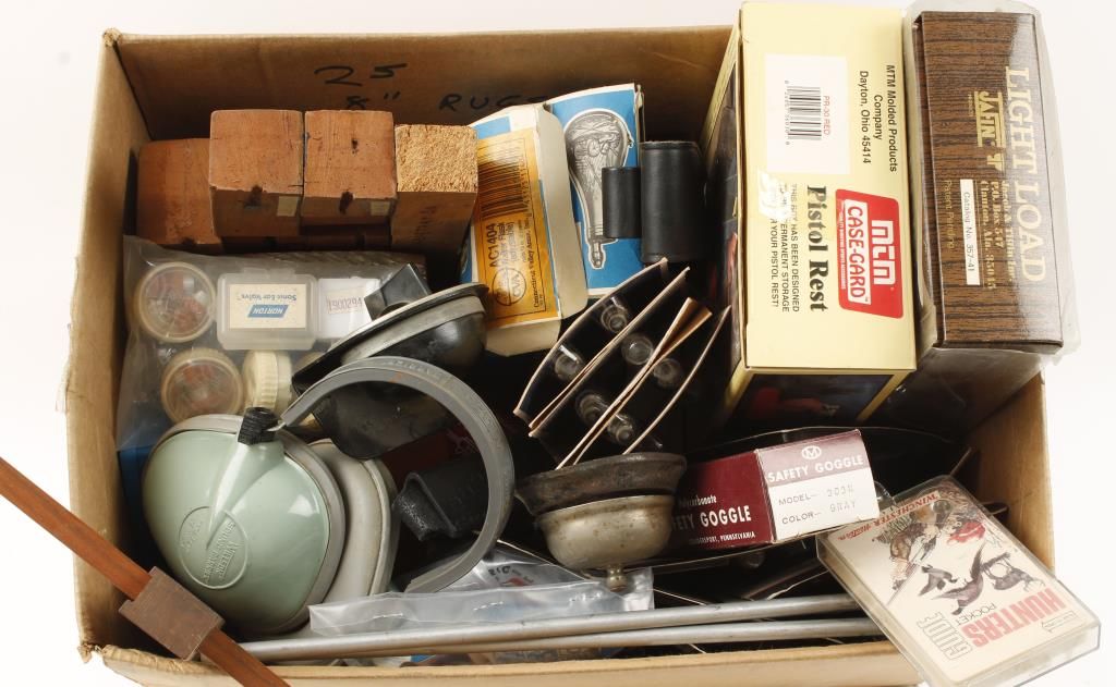 Includes (7)Mini-Mag flashlights, (1)case Guard pistol rest, (1)JaFin light load for Ruger New Model Blackhawk and Super Blackhawk, (3)CVA Walker powder flasks (black powder-adjustable), (1)bag disposable ear plugs, and more.