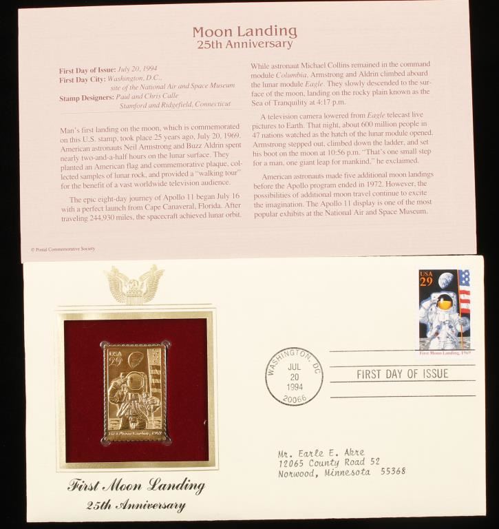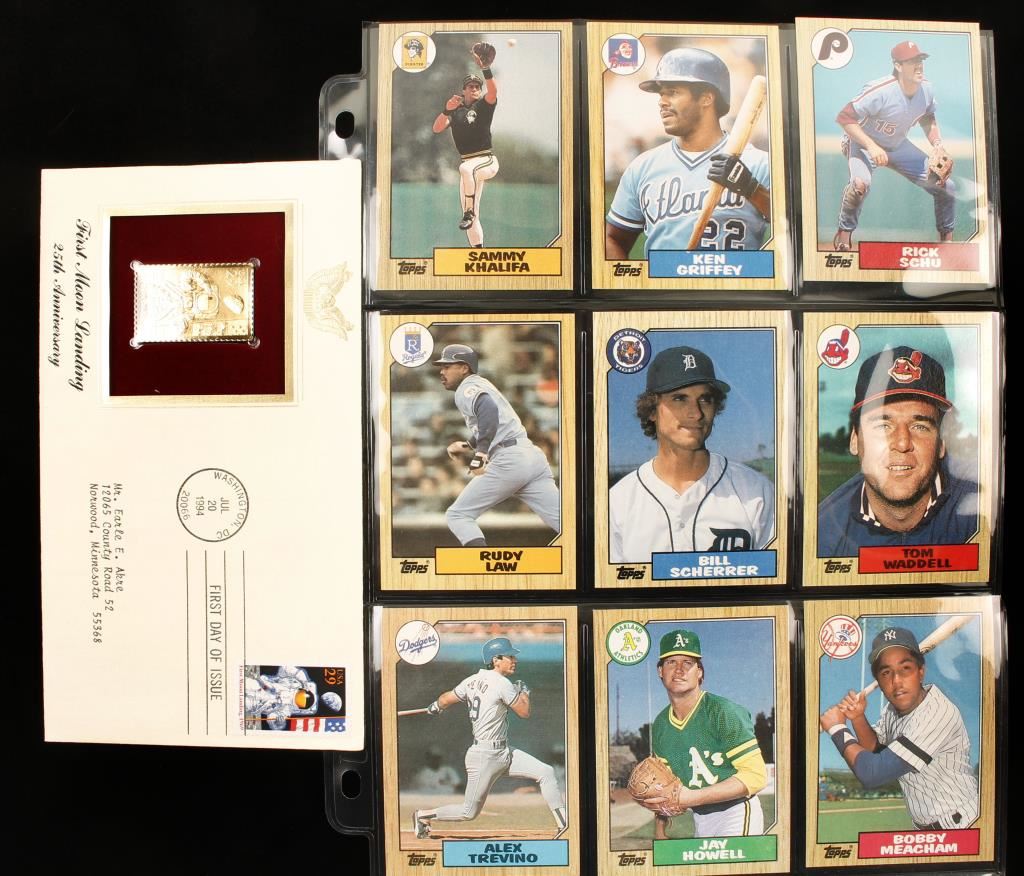 25th Anniversary Moon Landing Stamp and a collection of 9 Baseball Cards including; Ken Griffey, Rick Schu, Tom Waddell and many more...