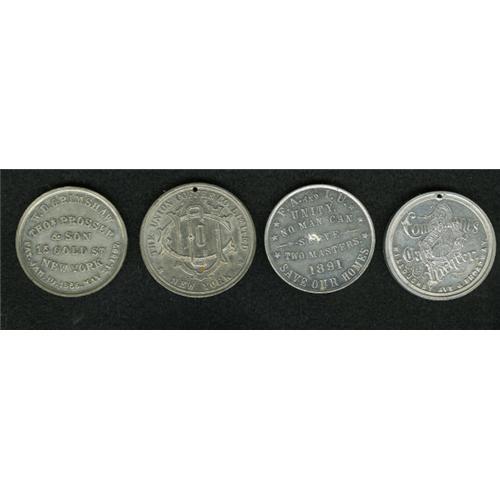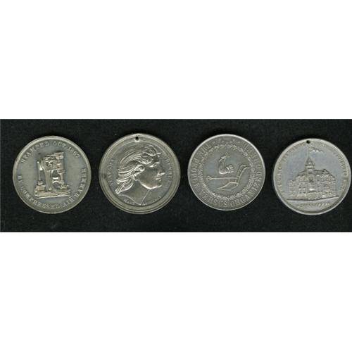 <B>Miscellaneous Merchant's Medal Group.</B></I> This lot includes: <B>Carl Richter, Brooklyn, NY 1891 Bkn-63;</B></I> <B>Union Coffee Co., NY-NY 340;</B></I> <B> W. D. Grimshaw 1867, NY-NY 105;</B></I> and a <B>F.A. and I. U. Maverick 1891 (The People Versus Organized Greed).</B></I> An intriguing group that becomes more appealing upon personal inspection.