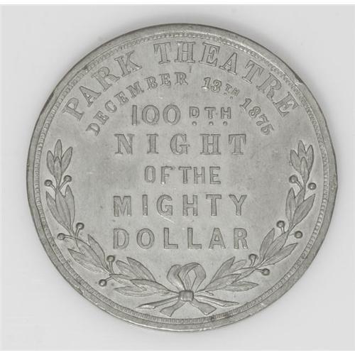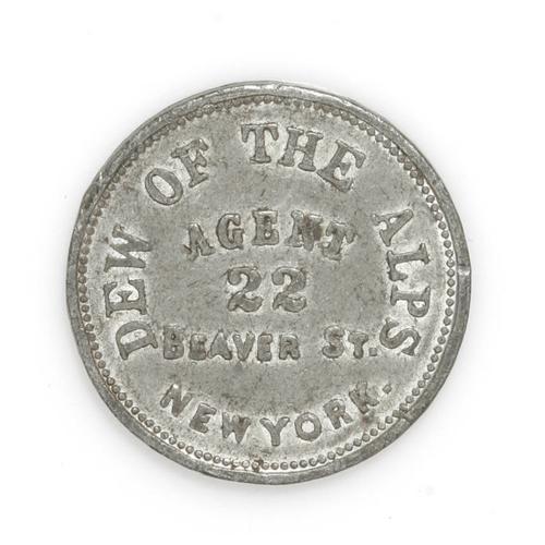 <B>Miscellaneous Merchants & Medals Group.</B></I> Includes: a token issued by Wolfe's Schiedam, New York, NY-NY 390; a Park Theatre Medal, New York, NY-NY 240; and an 1888 International Fair Medal, Buffalo, New York, NY-Bf-14.