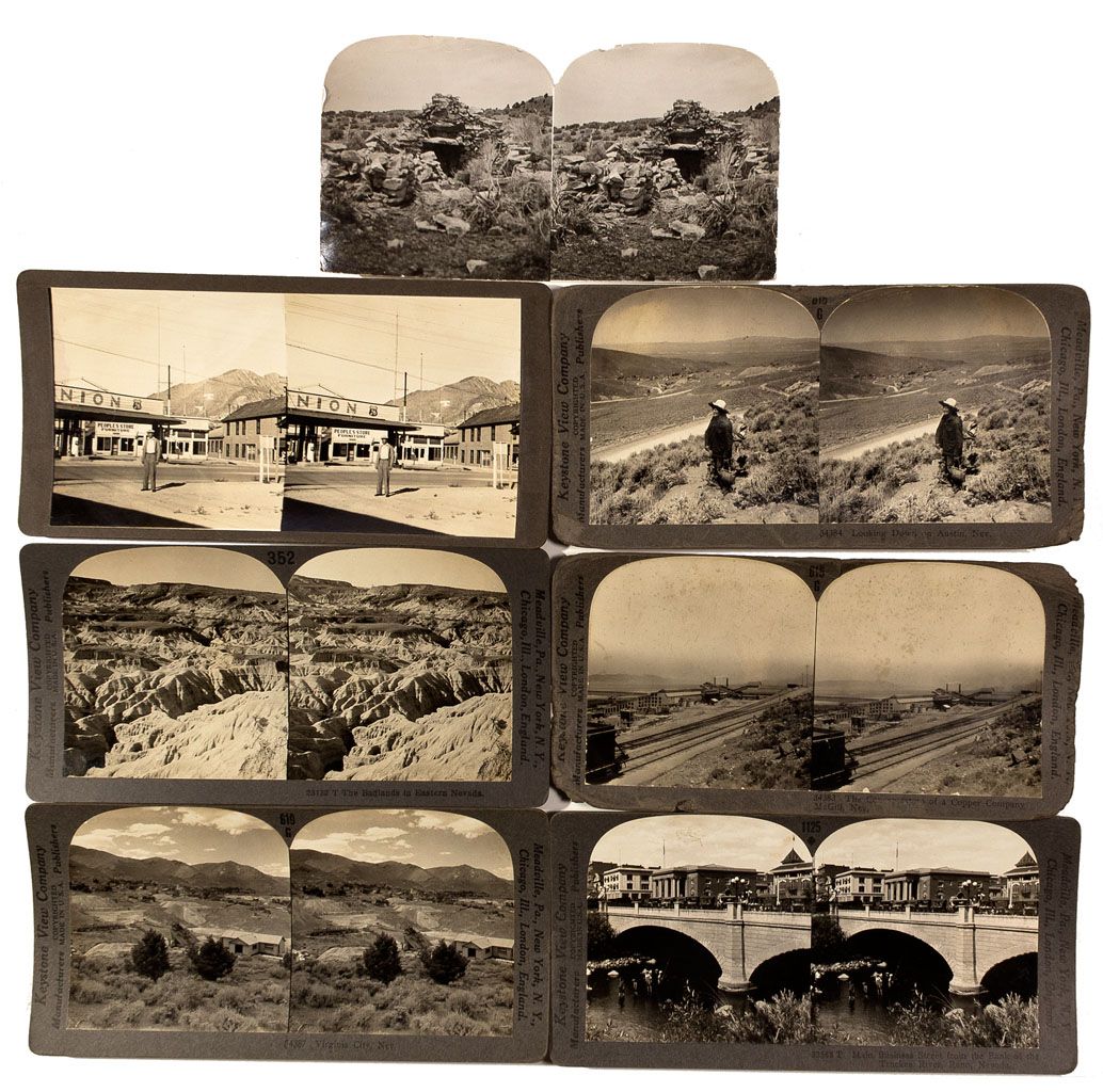 c1930 - Lot of 7 images ranging in size from 6” x 3” to 7” x 3.5”. Medium contrast and sharp focus. Little wear. Shows views of Reno, Austin, Eastern Nevada, and Virginia City. - Maish Collection -61310