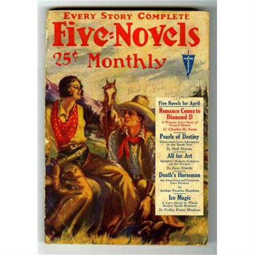 <B>Miscellaneous Pulps Group (Various Publishers, 1928-36) Condition: Average VG.</B></I> Includes the July 1928 <B>War Stories </B></I>(GD/VG, some warping along spine), April 1931 <B>Five Novels Monthly</B></I>, and March 1936 <B>Love Story Magazine</B></I>. Complete spines, clean covers, and supple pages. Approximate Bookery's Guide to Pulps value for group = $50.<BR><BR><b>Shipping:</b> Comics - Unslabbed (<a target="_blank" href="http://www.heritageauctions.com/common/shipping.php">view shipping information</a>)