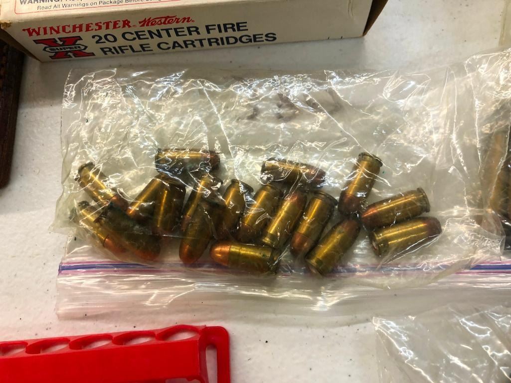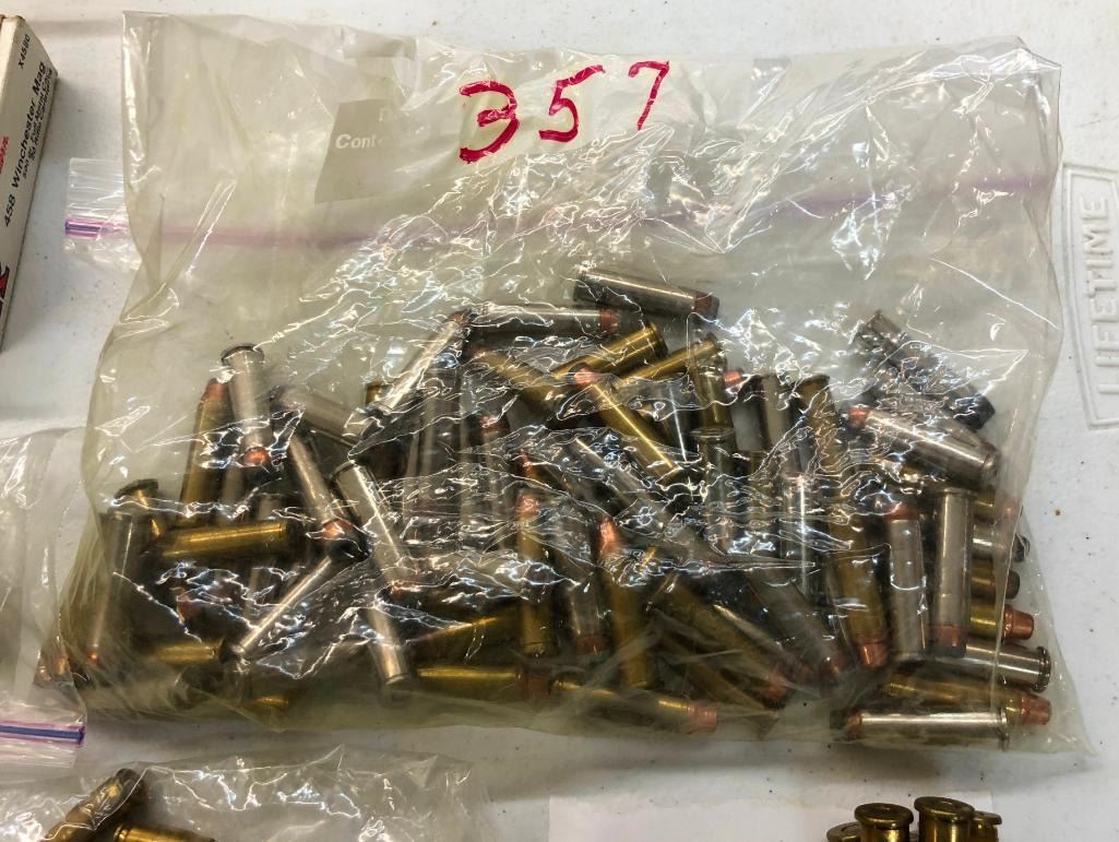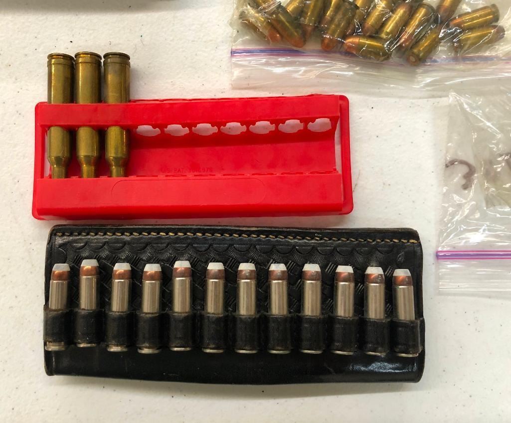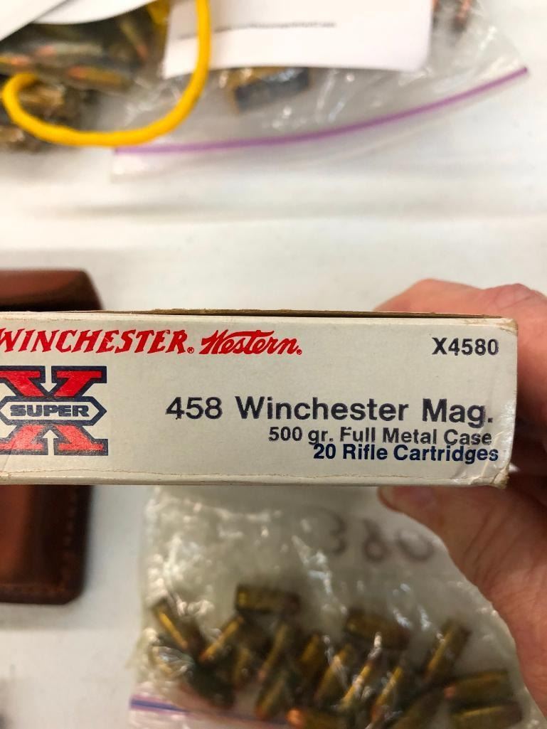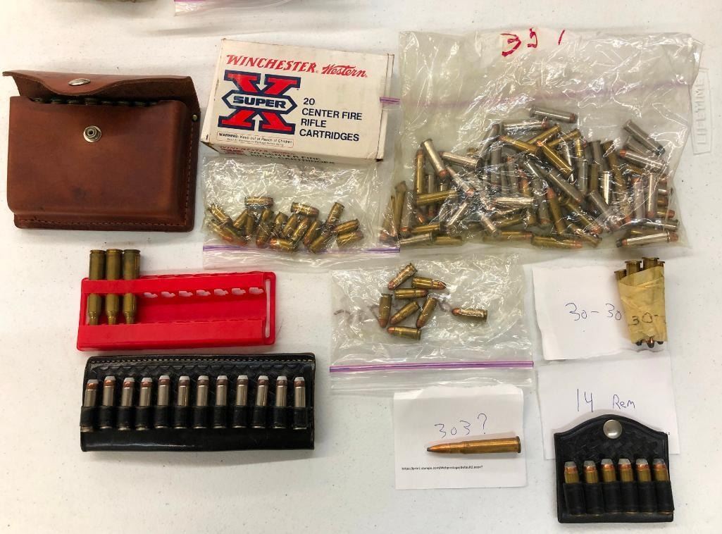 Offered here is a miscellaneous grouping of rifle and pistol ammo. Calibers include .458 Winchester, .357 Mag., 357 Mag., .380 auto, .30 Luger, 7mm Rem Mag., .14 Rem., .30-30, etc. Maker: Various. Approx. Age: Vintage to modern. Size: Various. Condition: As-Is. Please look closely at the pictures - they are an important part of our description. Shipping: There will be a $10 handling / packaging fee for shipping this lot. The actual cost of postage will be added on top of that. BUY IT NOW: If you would like to buy this item now without waiting for the auction to end (this option is only available up to 48 hours before the auction starts to close), the “Buy it Now” price is the high estimate of this lot. If you would like to end the auction early and pay the high estimate (plus applicable fees), please contact us by phone or email and reference this lot number.