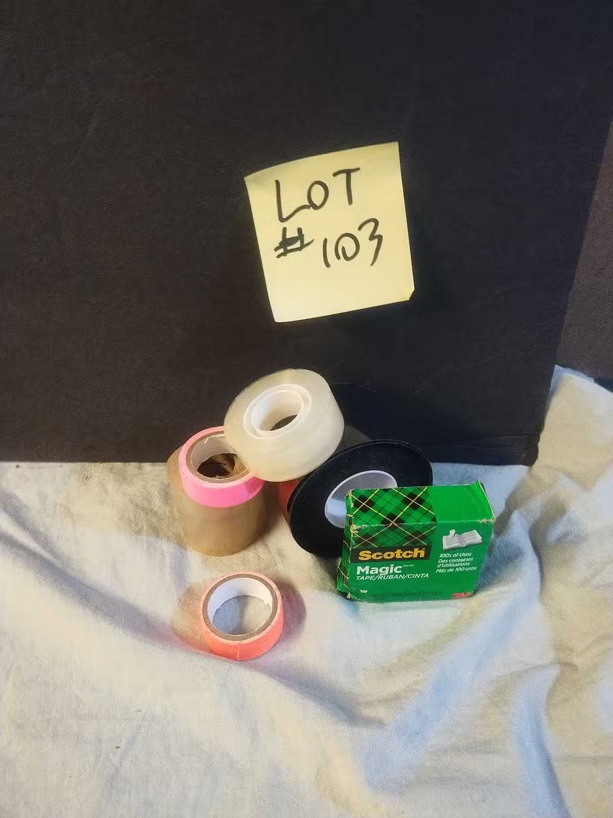 Various mix of scotch branded tape, electrical tape, double sided tape and more, some are new rolls, and some are partially used, see photos in each lot.