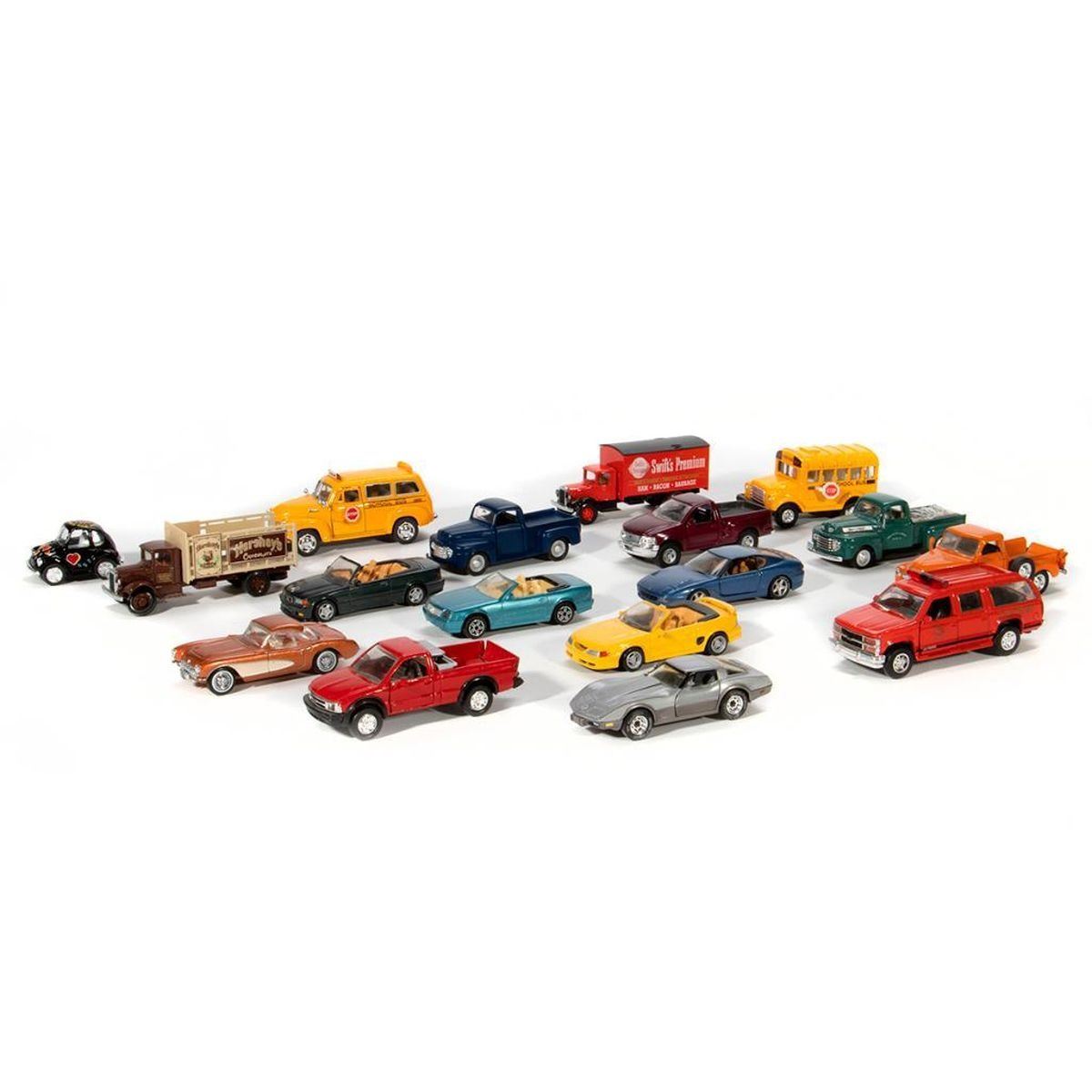 (12) Trucks, (2) Construction (with damage), (43) Cars, (15) smaller trucks