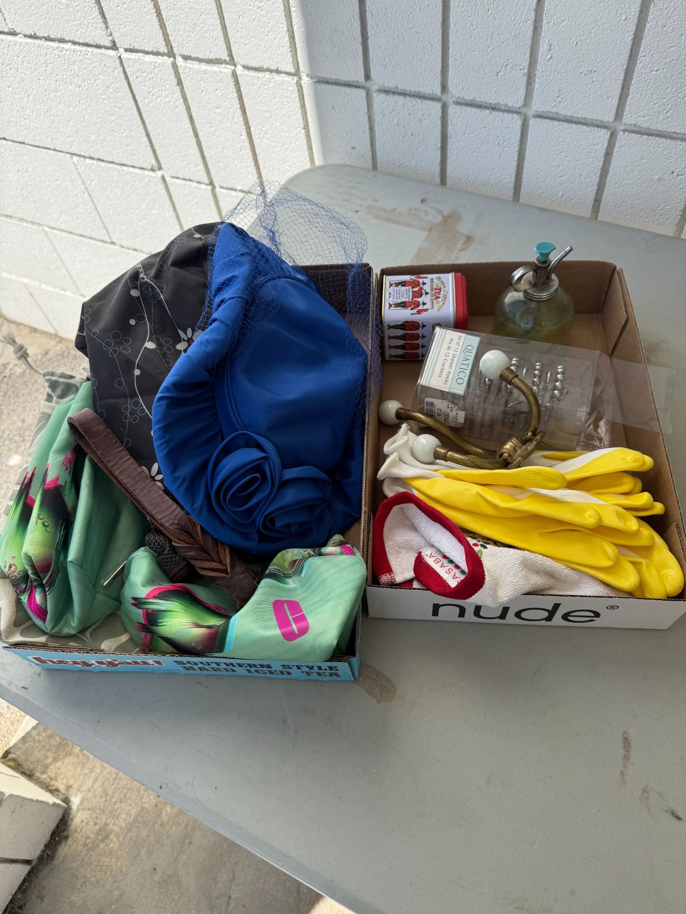 Miscellaneous lot, fern, sprayer, shower, curtain, hooks, etc.