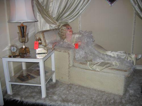 Miscellaneous props: antique French phone, end table, lamp, clock, rug, mirror only. (No wax figure)