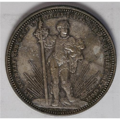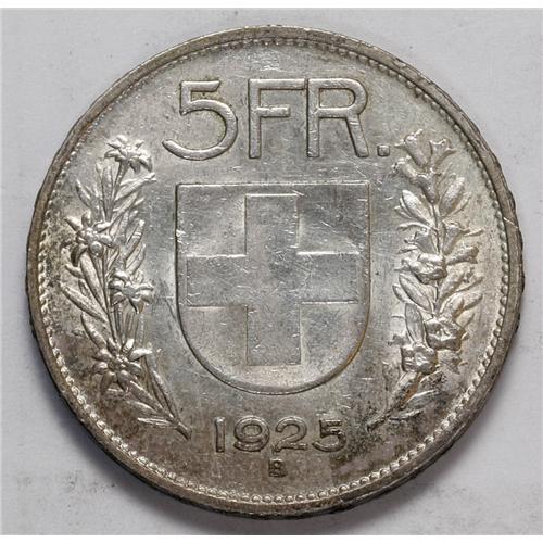 <B>Miscellaneous trio including:</B></I> 1 Franc 1894A, fully lustrous, Choice AU; 5 Franc 1925B, lustrous XF-AU; and a Shooting Festival 5 Francs 1879 Basel, lustrous AU with attractive toning and light abrasions. <B>A sold as is, no return lot.</B></I>