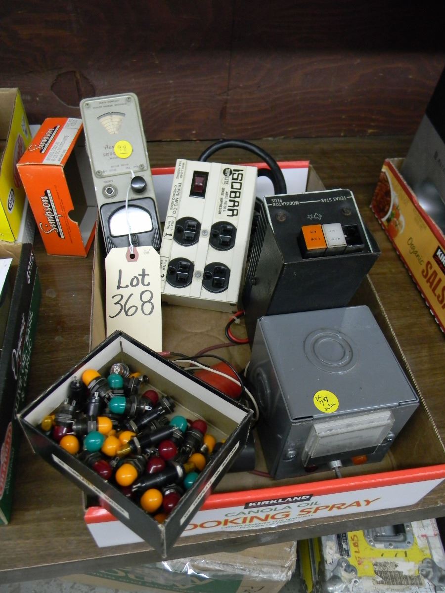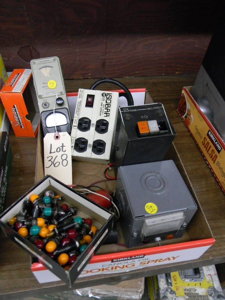 Grid Dip meter, surge protector; meter; modulator; and box of pilot lamps