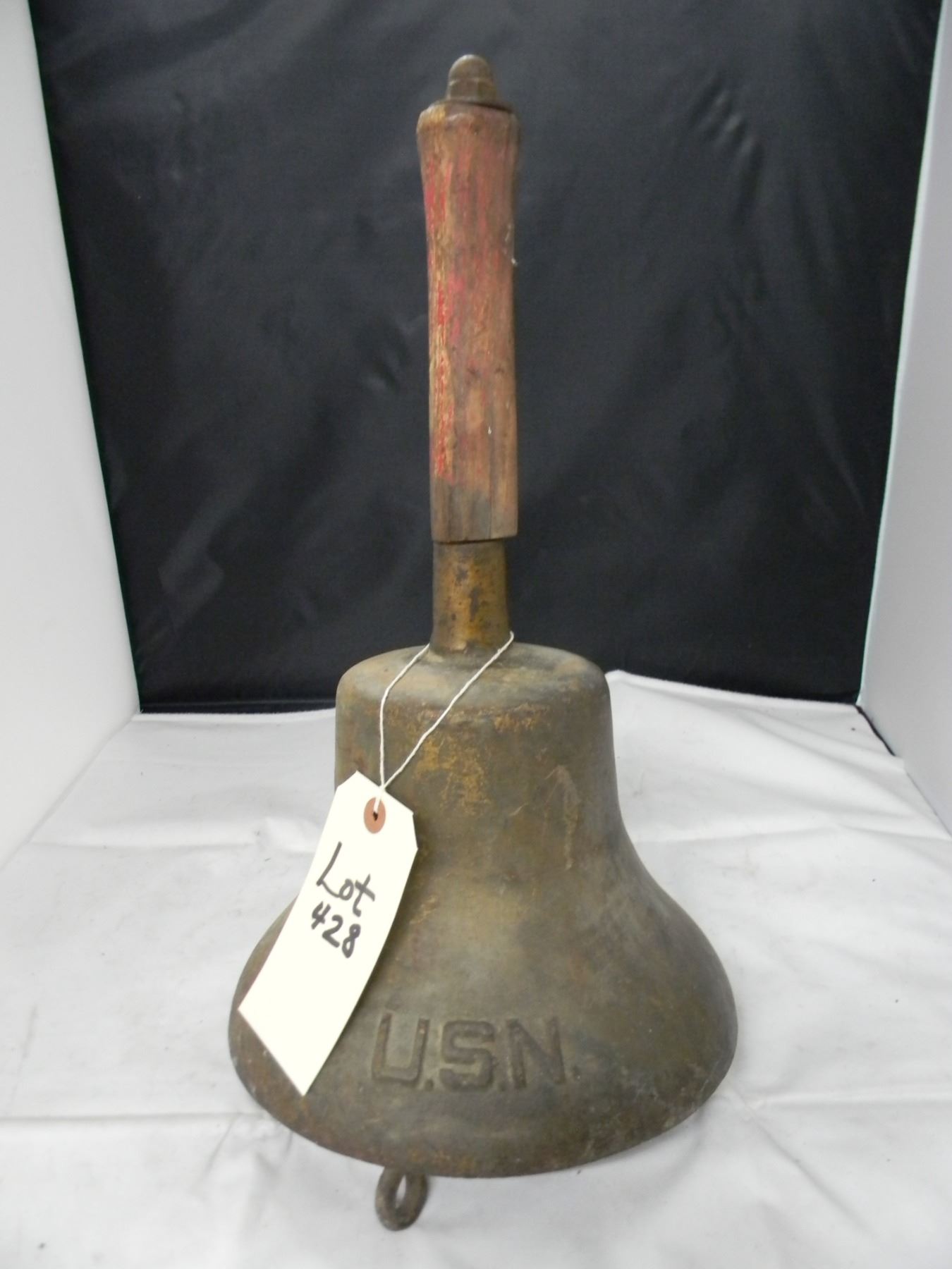Large navy bell labeled U.S.N. Appears not to be brass. Probably iron.