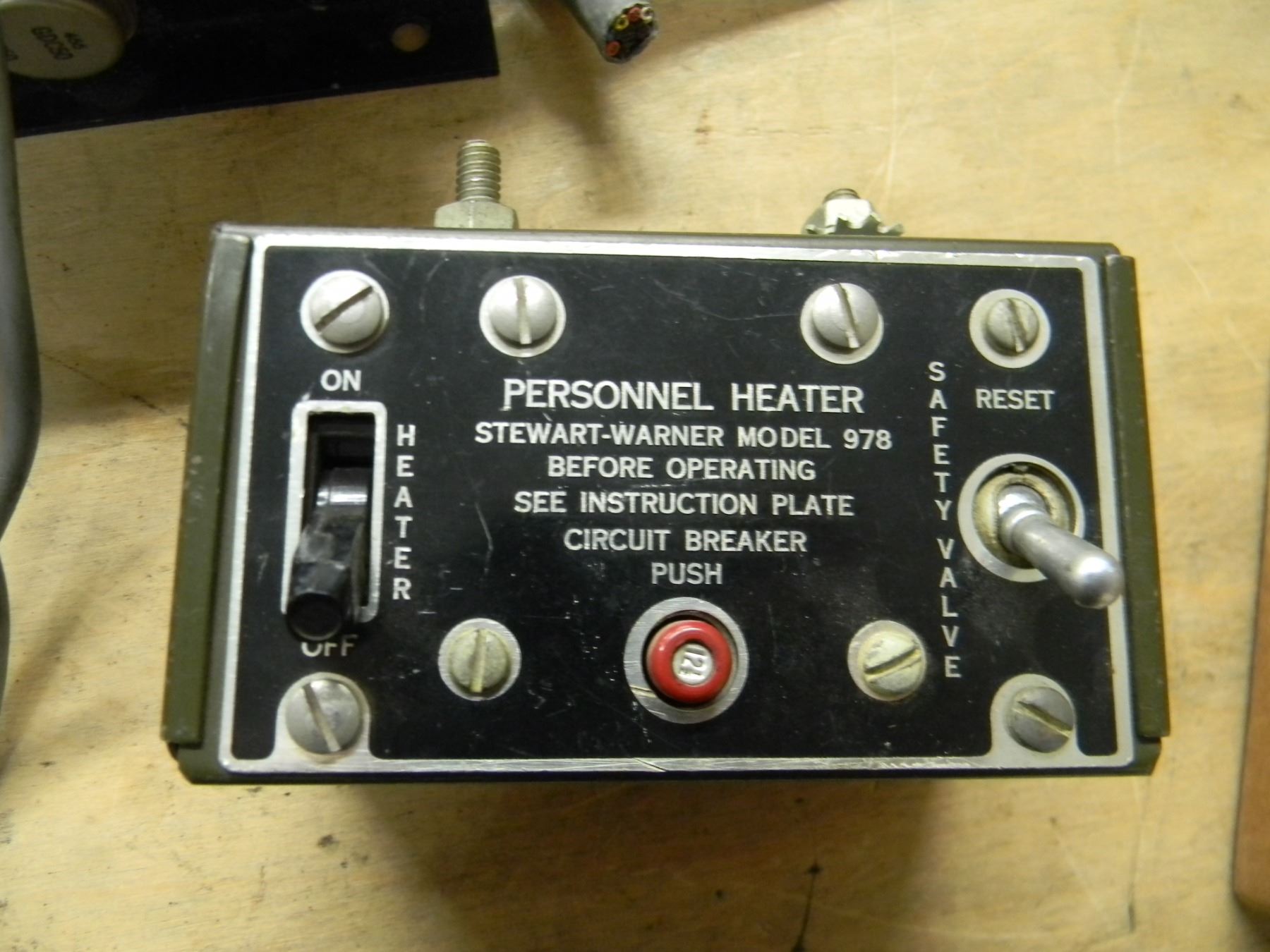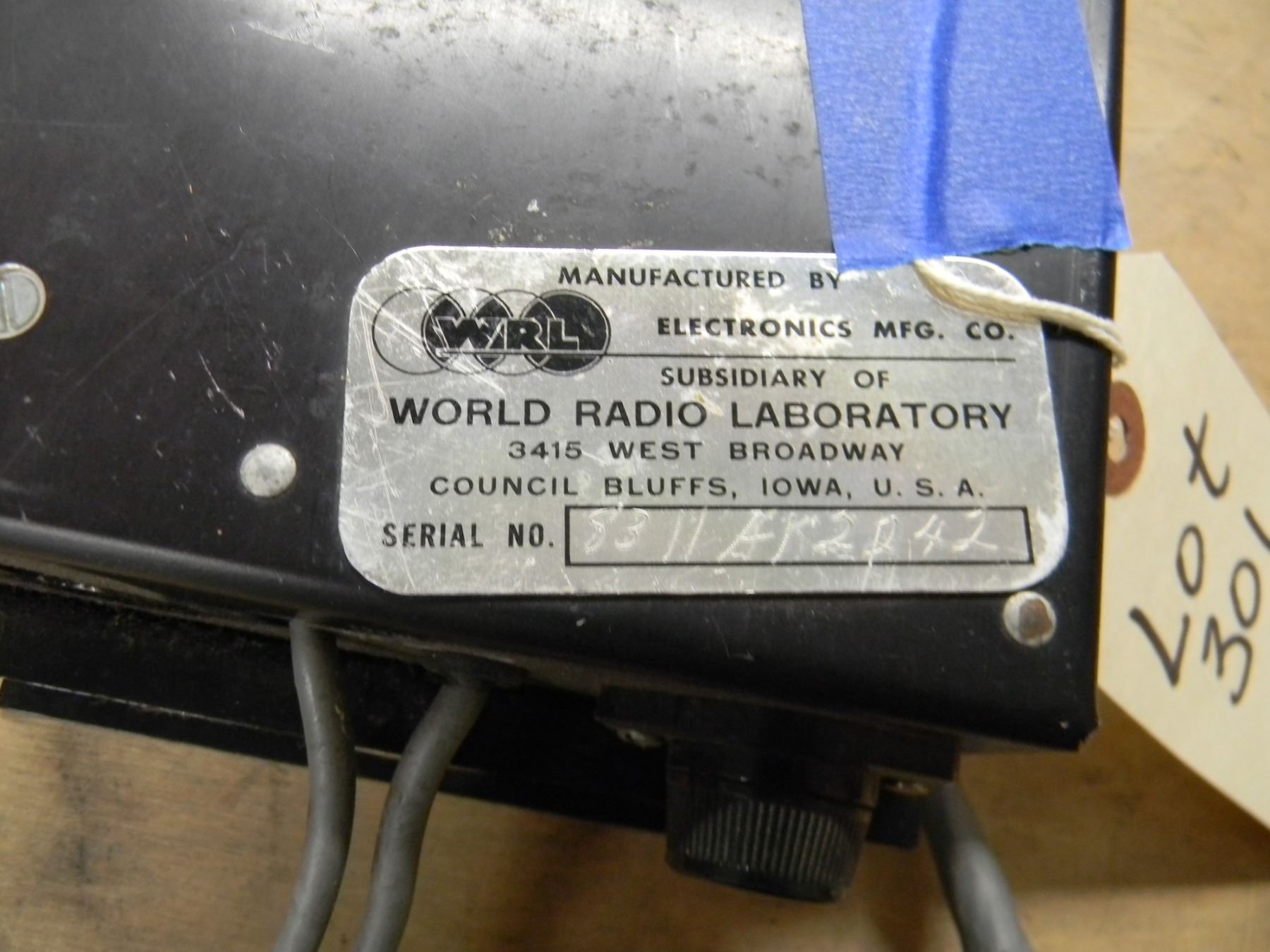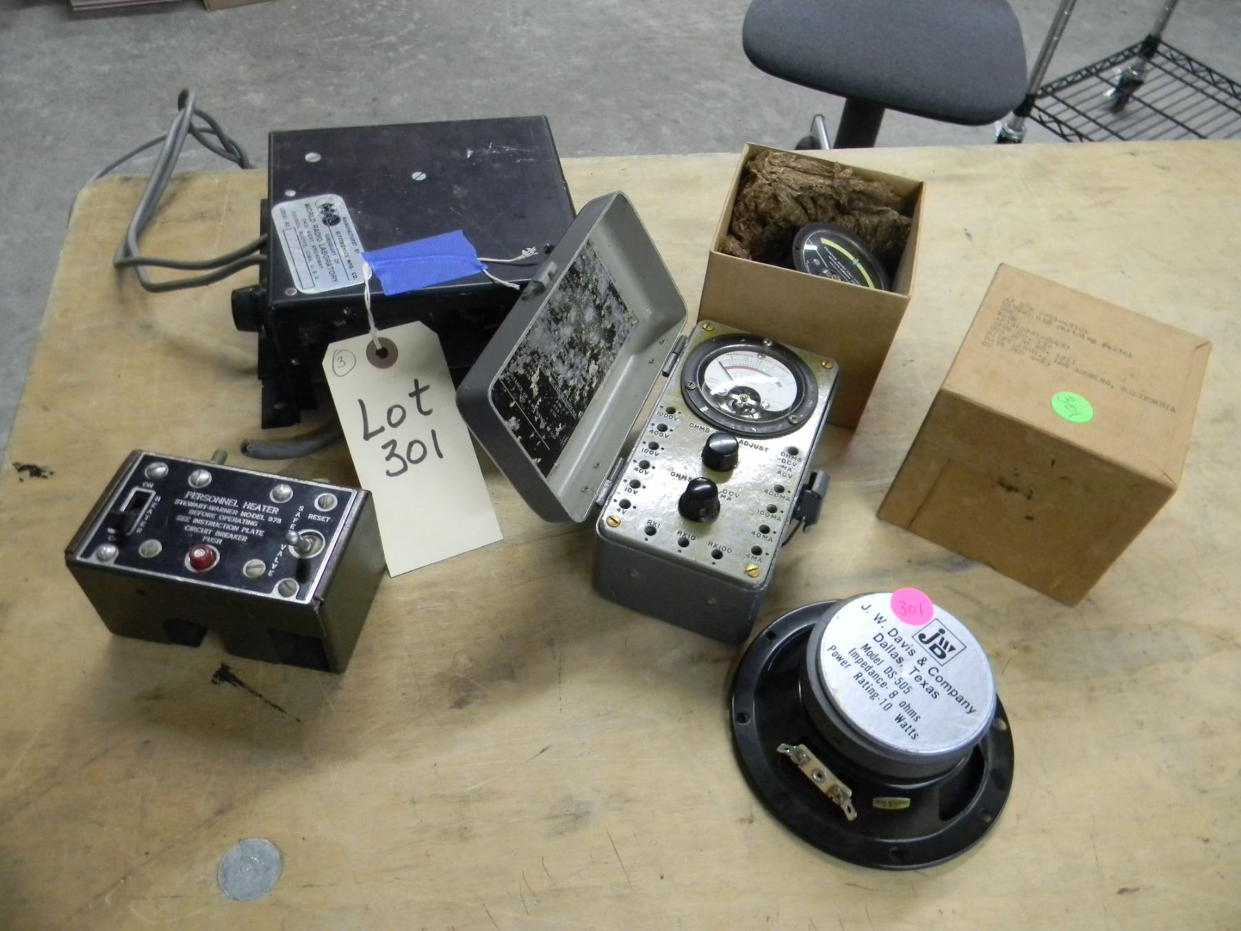 5 items - World Radio Laboratory test equipment; J. W. Davis and Co. small speaker - model DS-505; Stewart Warner personal heater - model 978; meter; multimeter