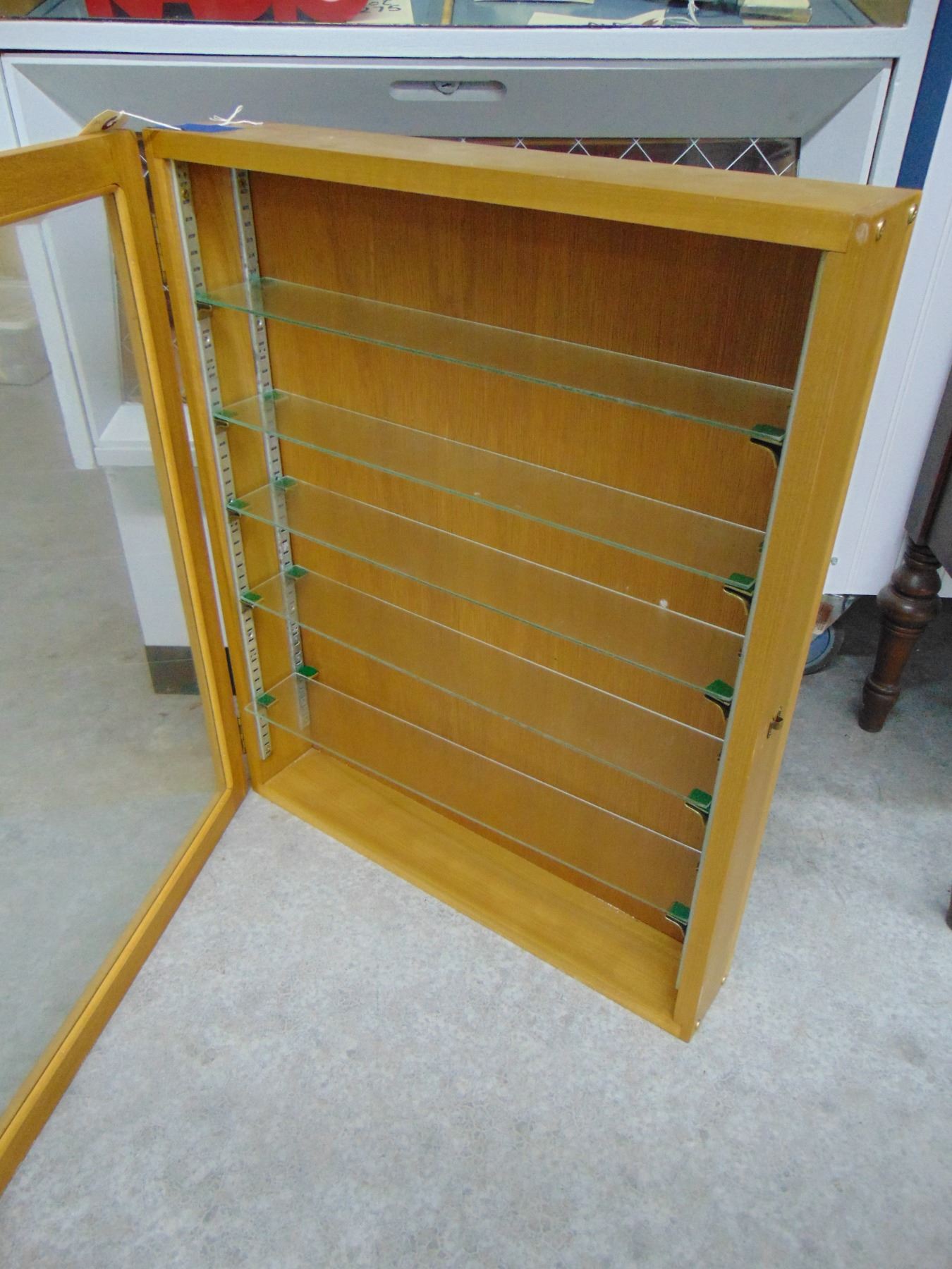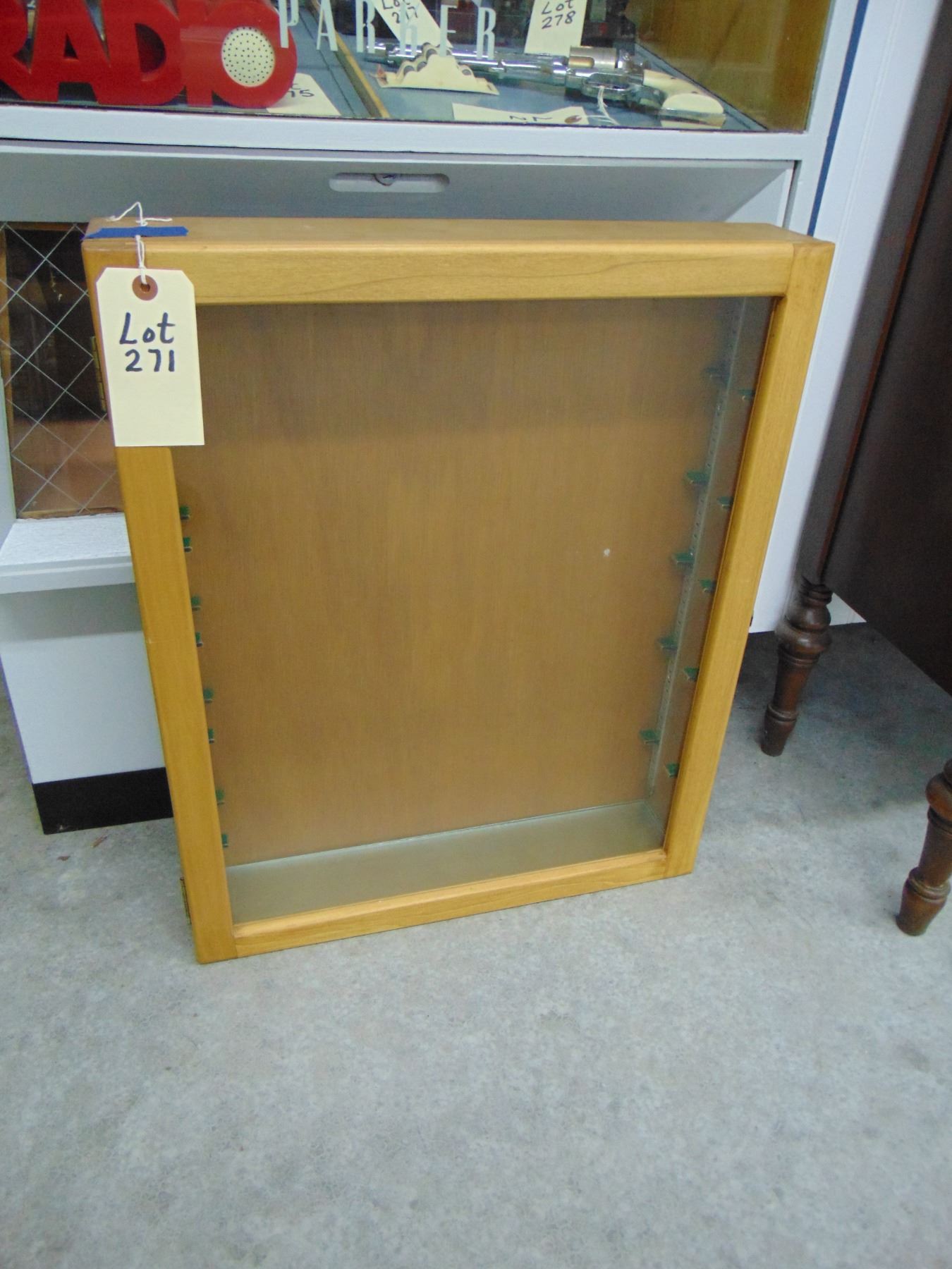 Display cabinet; 27”x22’x4 1/2”; inside shelves included; wall, floor, or table mount capable