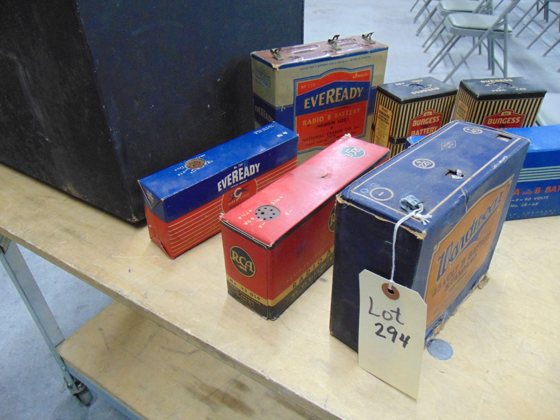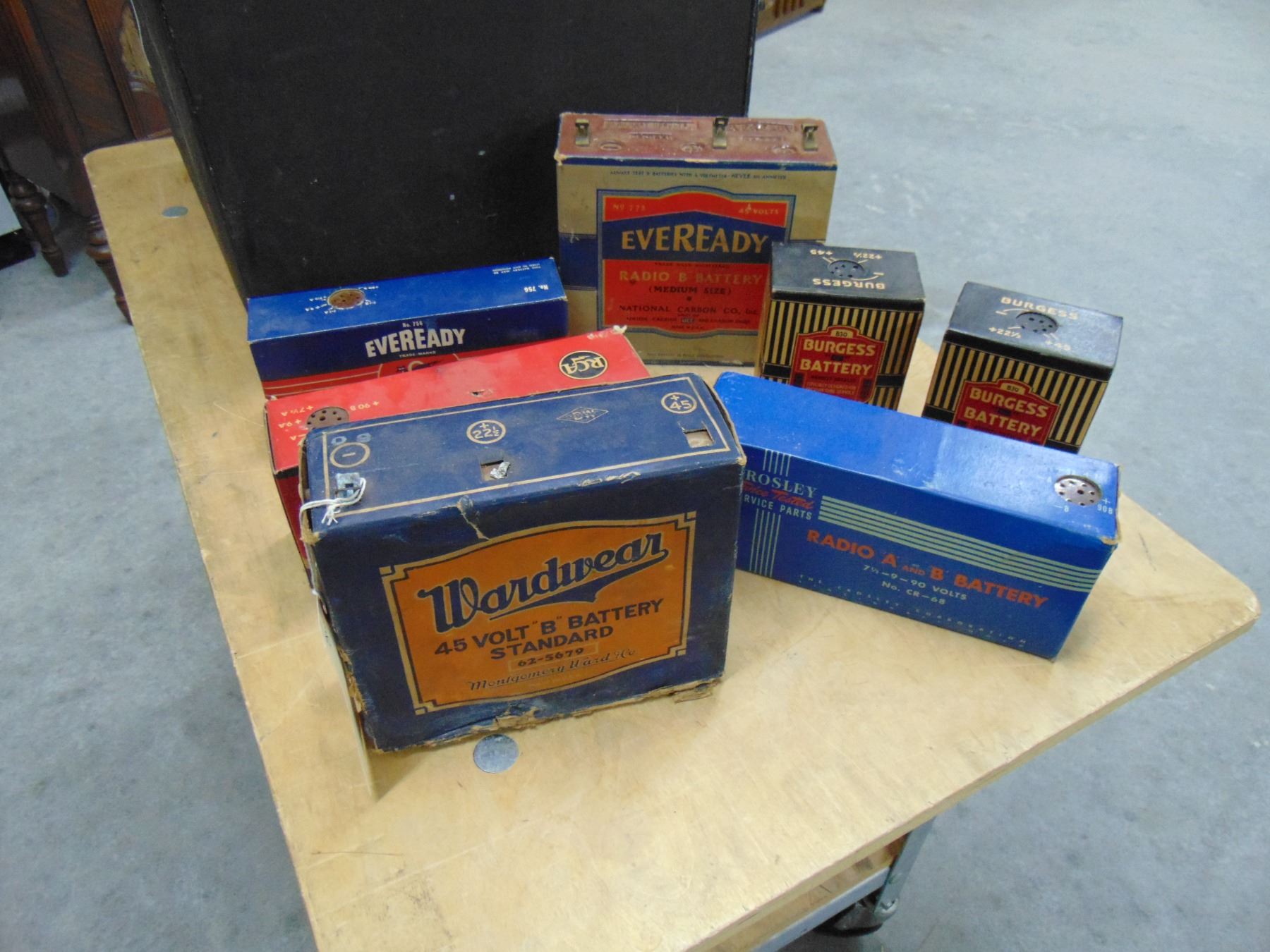 Flat of 7 early radio batteries; great display items