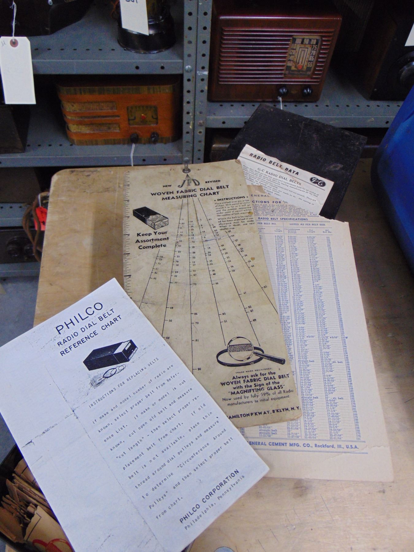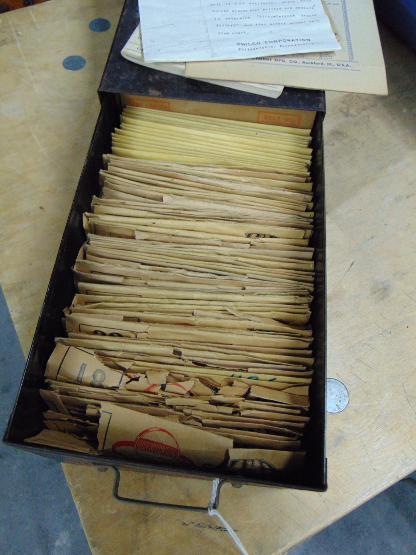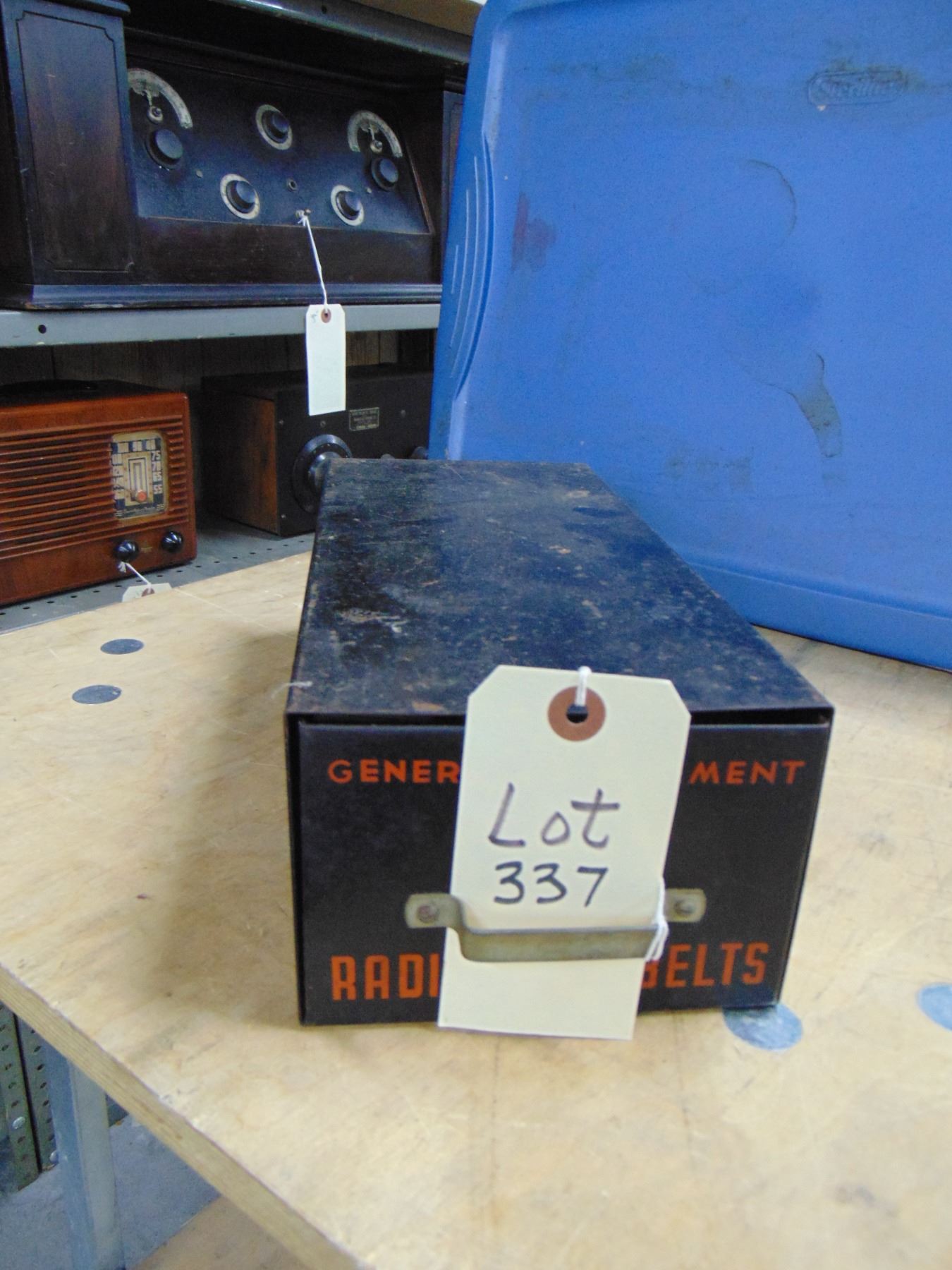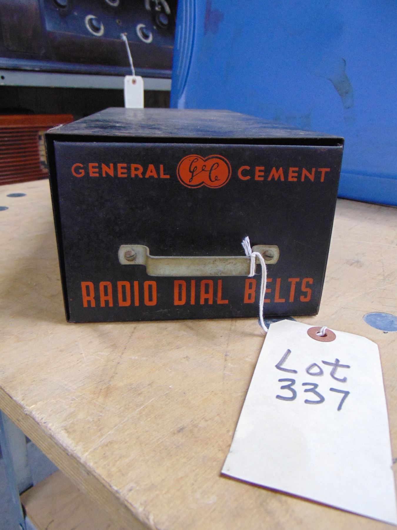 General Cement Radio Dial Belt container; with over 100 dial belts and charts