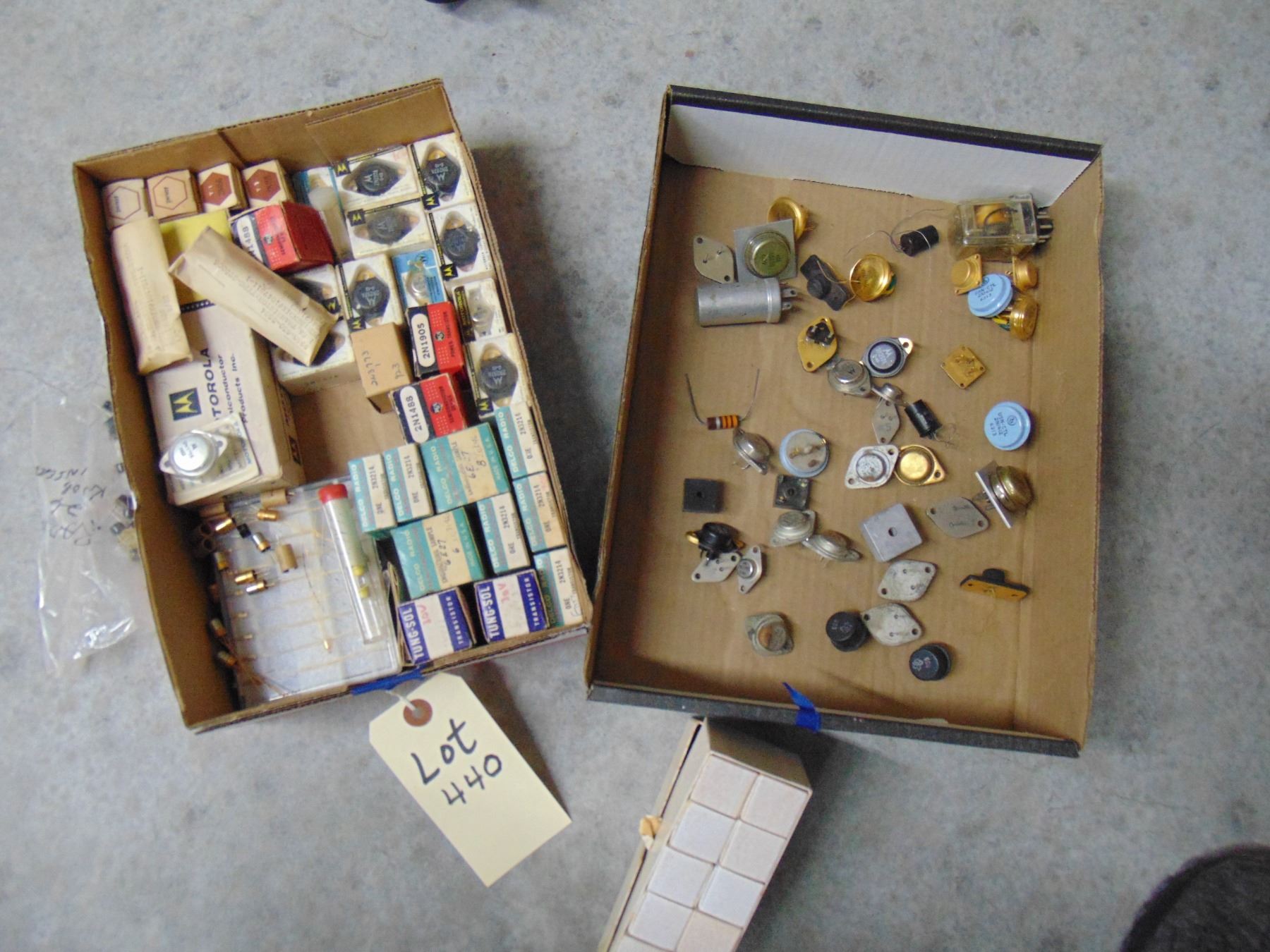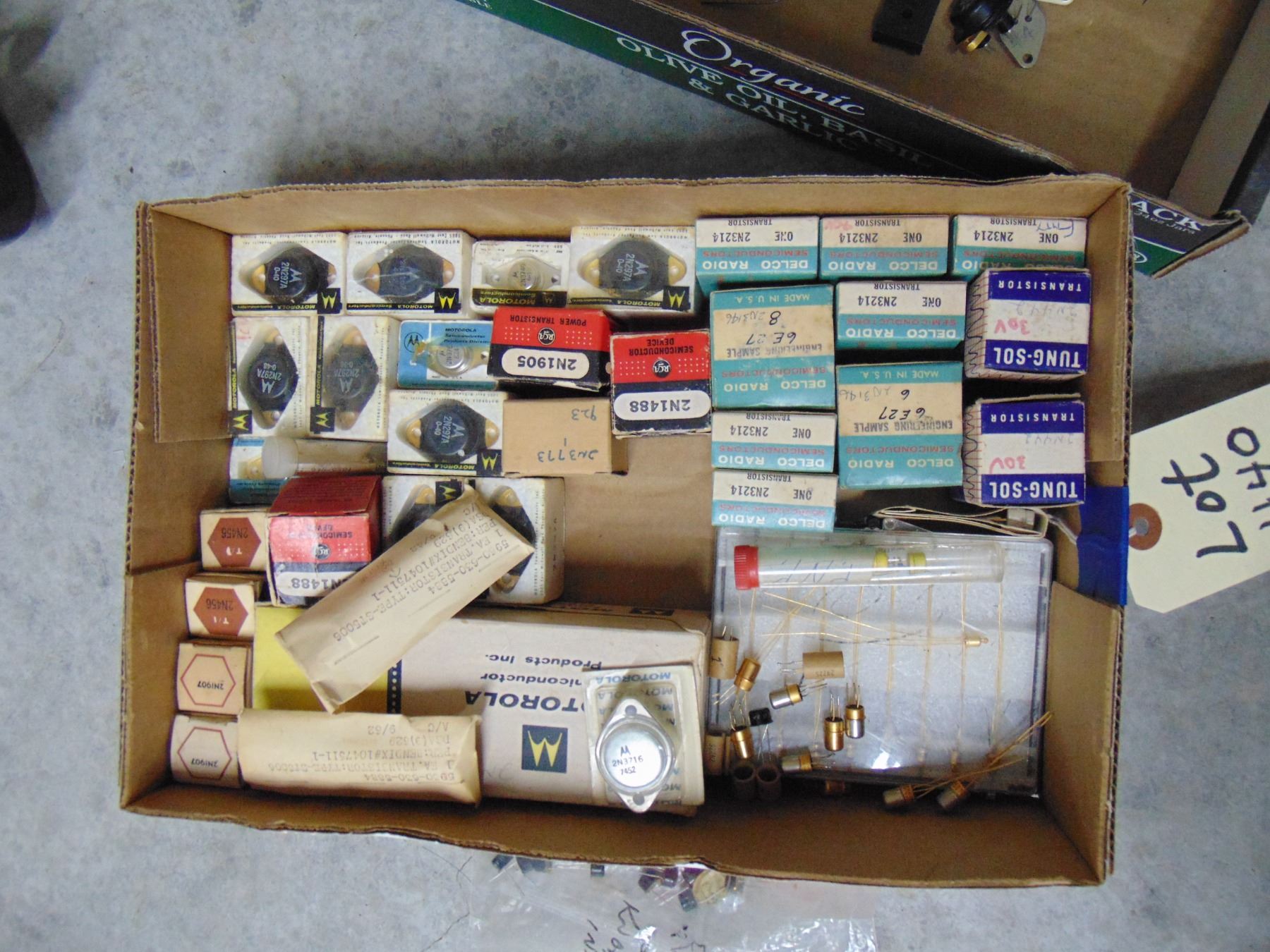 Flat of NOS transistors; includes boxed NOS transistors